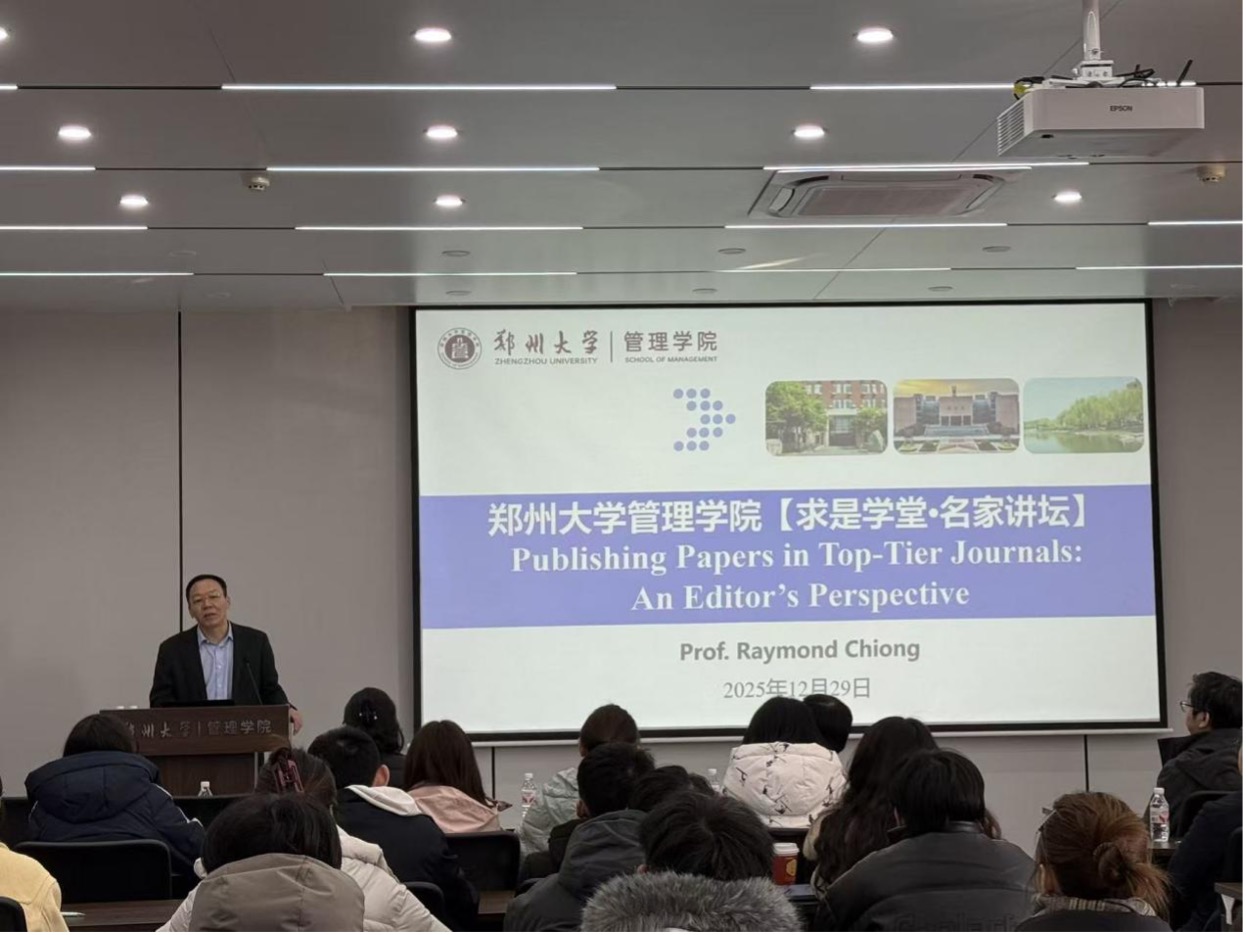 12月29日上午,郑州大学管理学院“求是学堂·名家讲坛”系列学术报告会在管理学院一号楼212报告厅顺利召开。此次报告会由郑州大学管理学院执行院长井辉主持,60余名师生参加了此次学术活动。