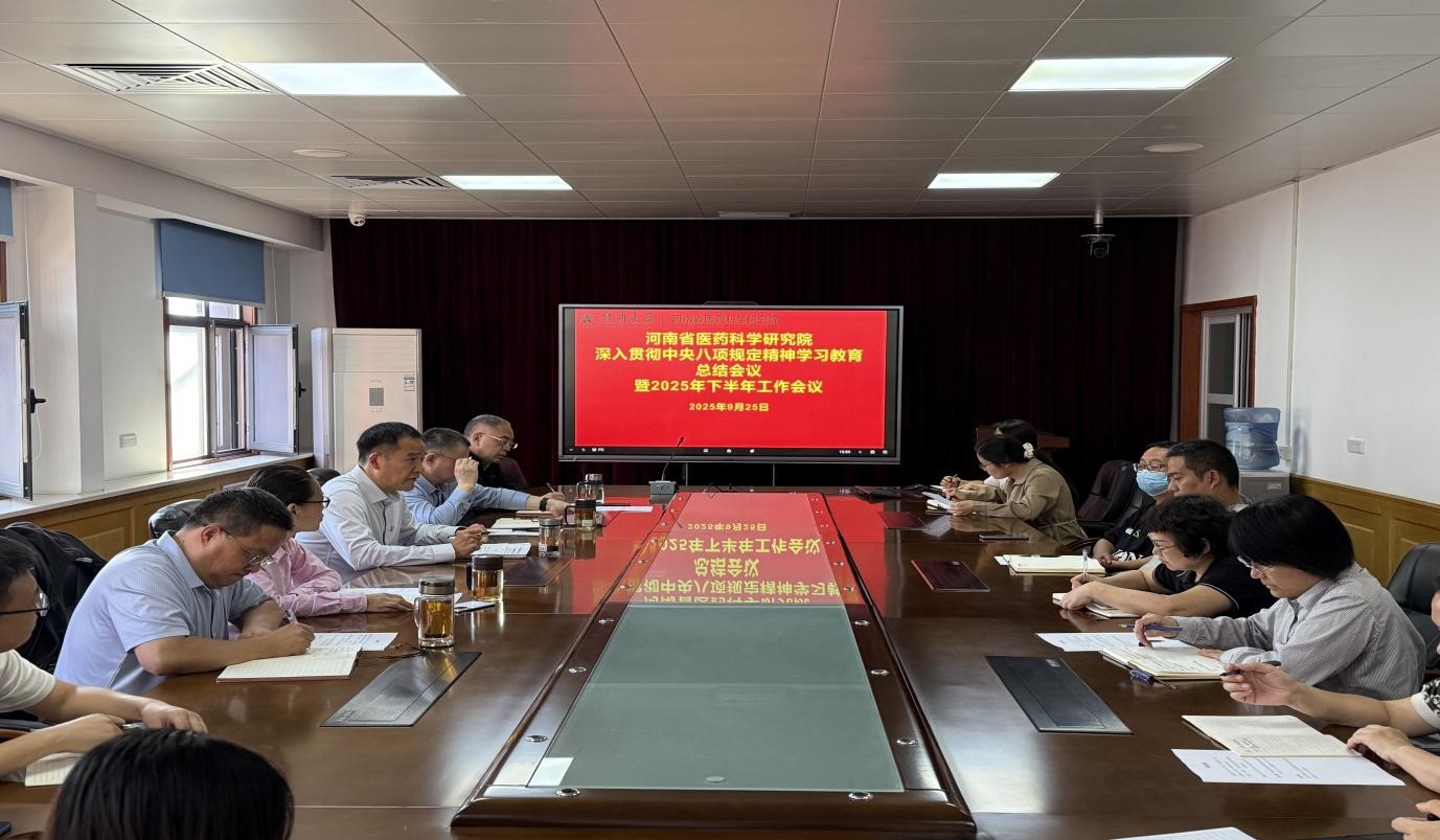 2025年9月25日,河南省医药科学研究院召开党委理论学习中心组(扩大)会议暨2025年下半年工作会议。学习贯彻习近平总书记关于深入贯彻中央八项规定精神学习教育的重要指示精神,全面总结学院学习教育成效,研究部署推进作风建设常态化长效化工作。院长张伟宏主持会议并讲话,全体领导班子成员及中层干部参加会议。