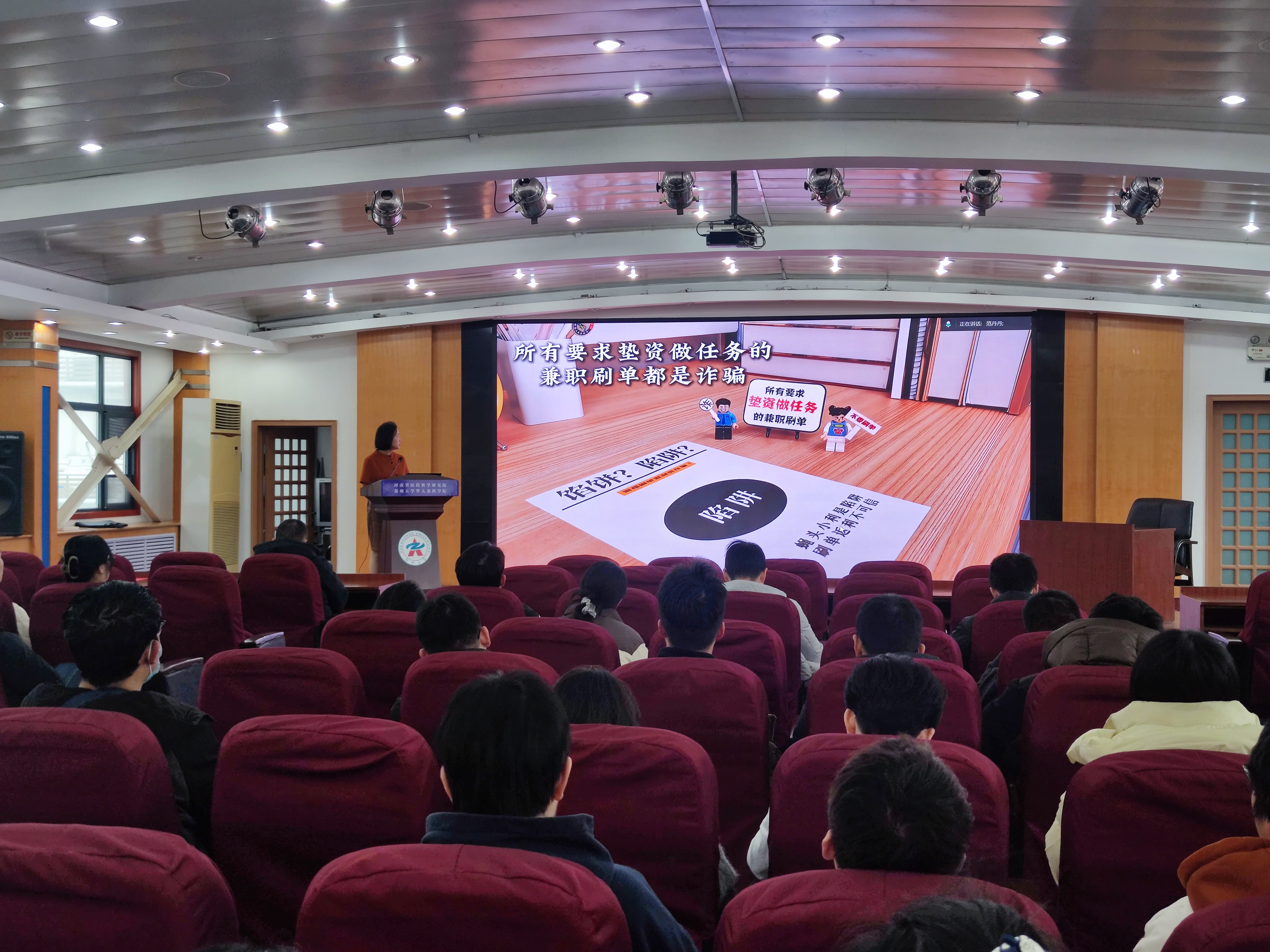 范丹丹围绕研究生学习生活全环节进行了系统的安全教育讲解。内容涵盖交通安全、人身财产安全、尤其是实验室安全,提醒同学们务必遵守规程,防患于未然。同时针对当前高发的电信网络诈骗,进行了重点强调和专项警示教育。她详细剖析了冒充师友、刷单兼职、求职培训、论文交易等针对研究生群体的常见诈骗手法,并郑重提醒全体同学务必牢记“三不”原则:不轻信、不透露、不转账。安全教育环节结束后,范丹丹老师就研究生日常管理的相关规定进行了详细说明,重点讲解了日常请销假流程、节假日离校报备制度以及寒暑假留校、离校的管理要求。她要求全体同学自觉遵守校纪院规,保持信息畅通,配合学院做好常态化管理,共同维护良好的教学与生活秩序。