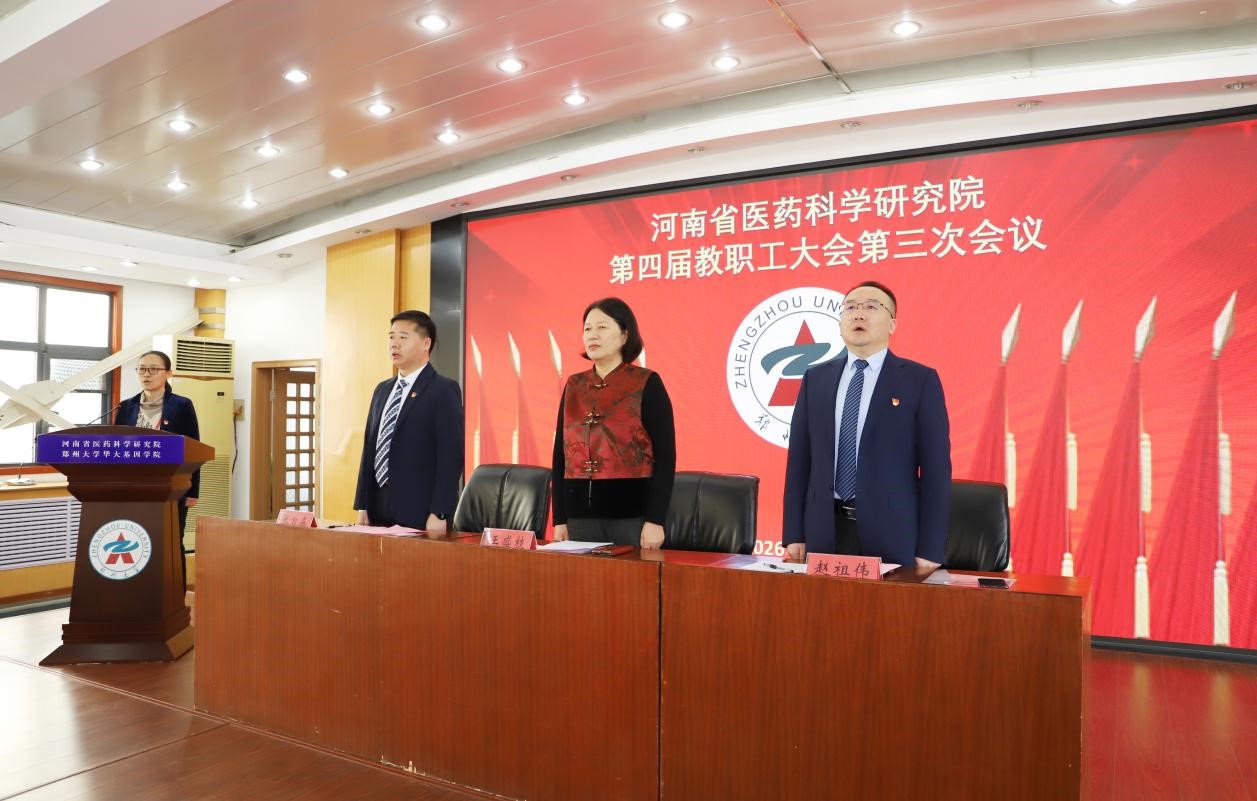 2026 年 1 月 7 日上午 9点,河南省医药科学研究院隆重召开第四届教职工大会第三次会议。郑州大学工会副主席、女工委主任王盛枝、医药院党政领导班子成员、全体教职工参会,会议由院党委副书记、纪委书记肖文沛主持。