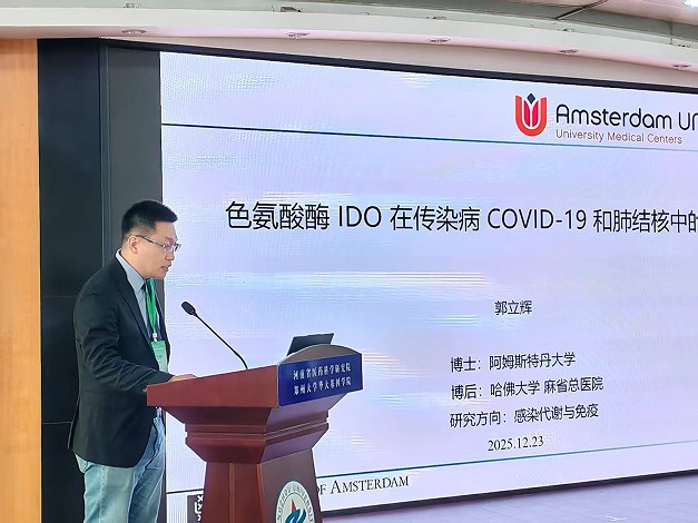 郭立辉博士长期深耕感染代谢与免疫领域,此次以“色氨酸酶IDO在传染病COVID-19和肺结核中的作用”为主题展开分享。他以新冠病毒与肺结核为核心研究模型,系统探索色氨酸代谢通路与炎症反应、免疫调控的内在关联,创新性提出“感染-IDO1/2-AHR正反馈理论模型”,成功筛选出IDO2和AHR两大潜在治疗靶点。相关研究成果发表于《EBioMedicine》等国际顶级期刊,获业内广泛认可。