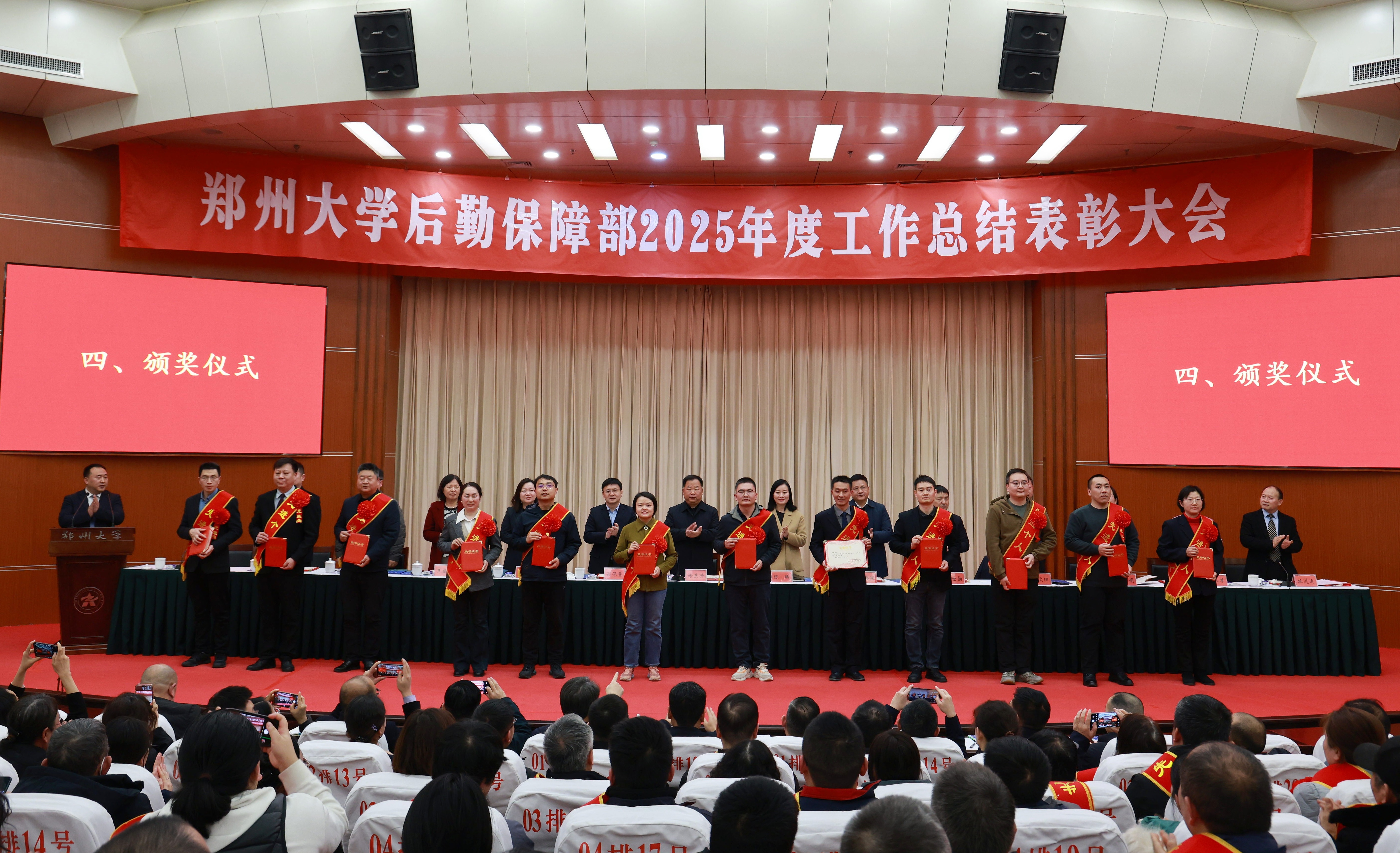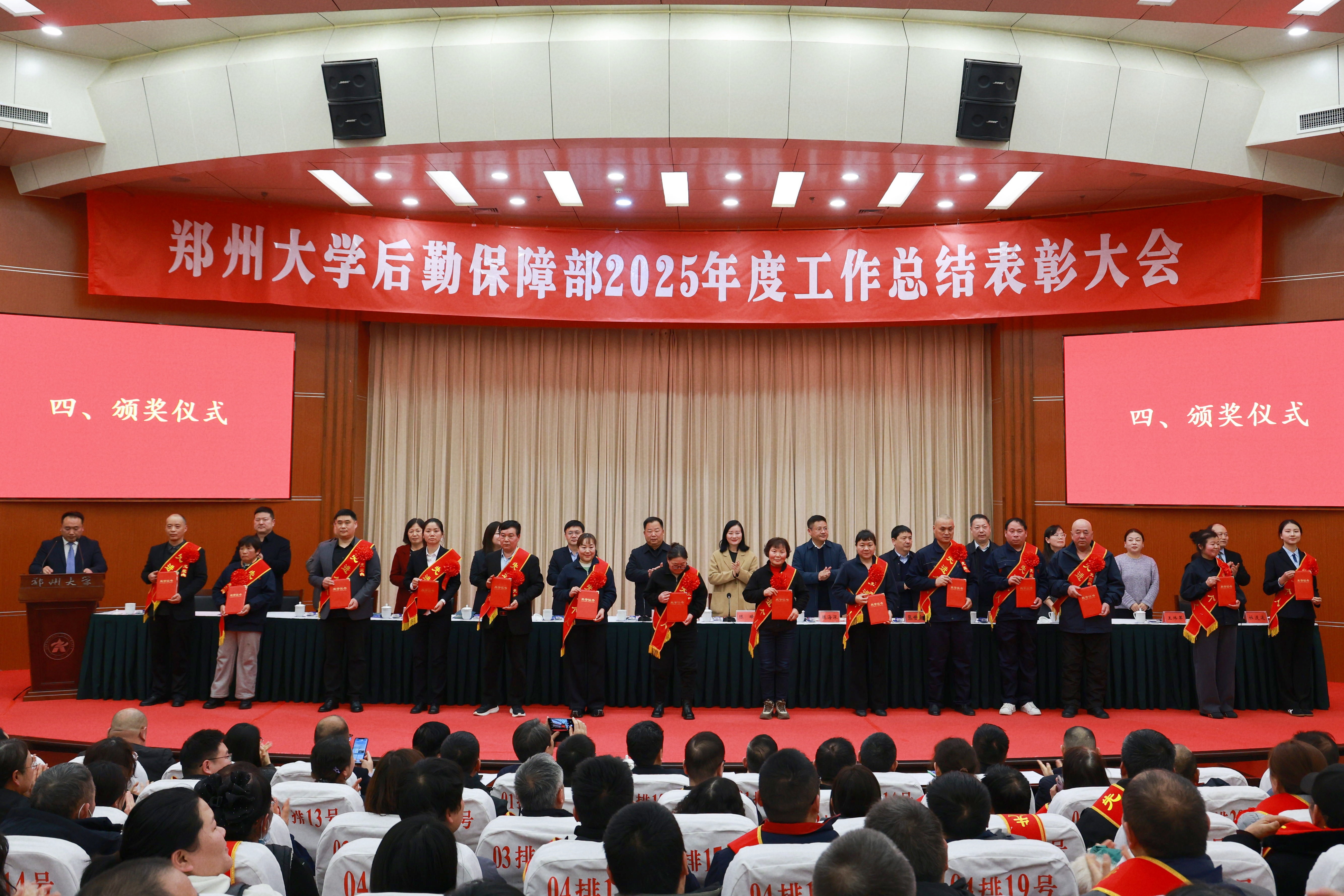 1月22日,后勤保障部在综合管理中心第一报告厅隆重召开2025年度工作总结表彰大会。校党委常委、副校长徐东升,校党委常委、纪委书记、监察专员陈曦出席会议。校党委常委、党委宣传部部长、新闻中心主任孙保营,校长办公室主任魏海深,党委学生工作部部长、学生处处长冀娟,党委研究生工作部部长、研究生院副院长张世勋,校工会副主席、女职工委员会主任王盛枝,保卫处党总支书记郭文理,党委办公室副主任王小兵,人事部副部长、党委教师工作部副部长杜社娟,资产与财务部副部长林祥中,校团委副书记王炜苹,部领导班子成员、干部职工代表及受表彰的先进单位和优秀个人代表430余人参加会议。大会由部党委书记梁冬松主持。