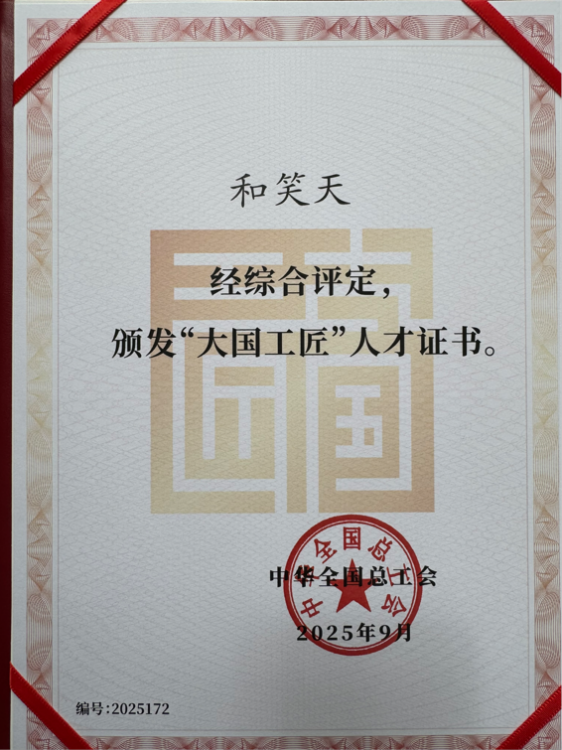 9月23日至26日,第三届大国工匠创新交流大会暨大国工匠论坛在重庆隆重召开,大会发布了2025年大国工匠人才名单。郑州大学化学学院毕业生和笑天凭借卓越专业能力与突出行业贡献成功入选,被正式认定为“大国工匠”。