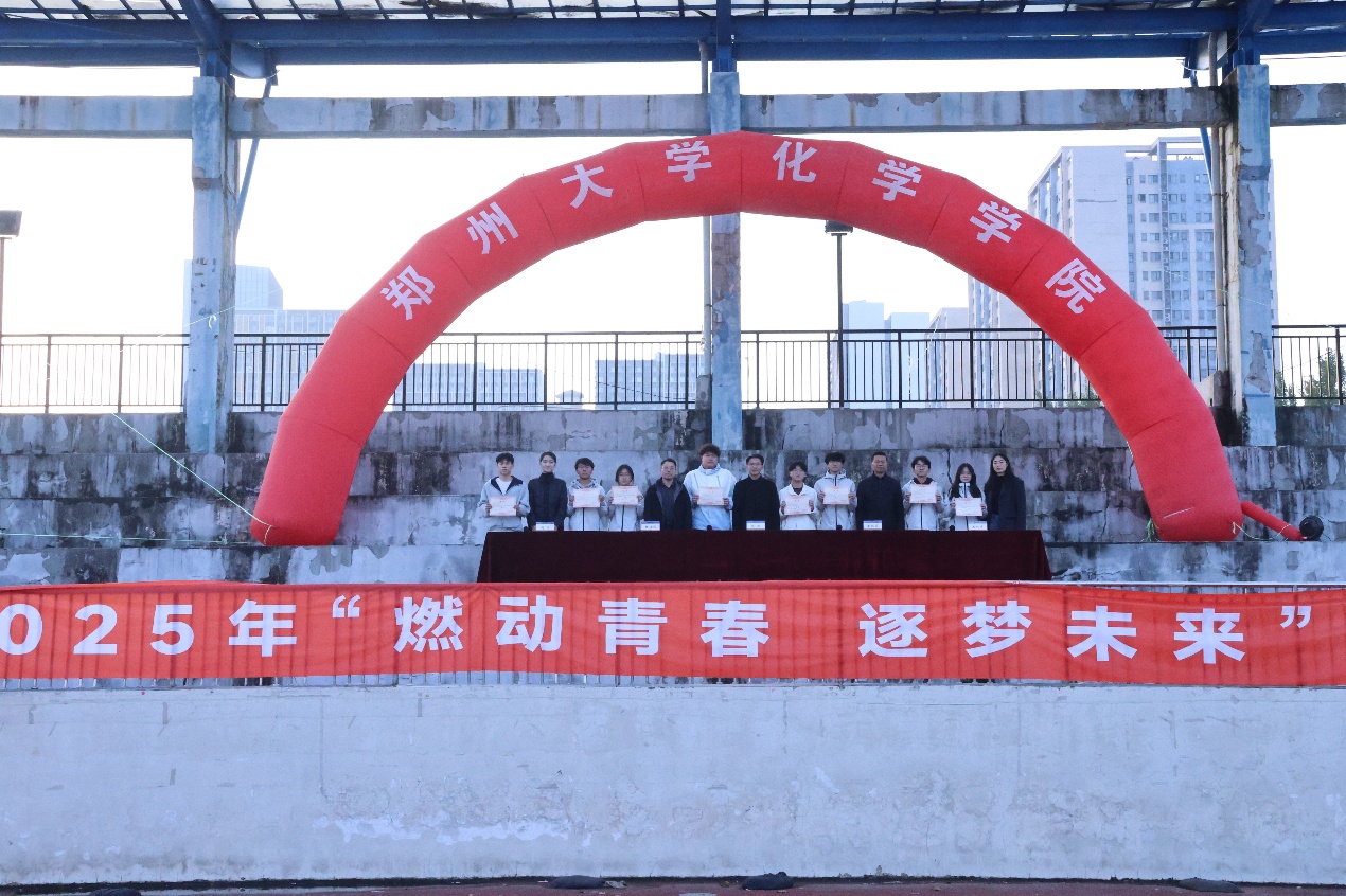 11月8日,化学学院2025年“燃动青春,逐梦未来”秋季运动会于主校区南操场成功举办。化学学院党委书记郝新奇,党委副书记、纪委书记王朝阳、党委副书记张衡、副院长武杰、副院长、平原实验室(郑州大学)执行主任宋传君,工会主席要红昌以及本科生和研究生辅导员与全体师生参加了开幕式。开幕式由党委副书记张衡主持。
