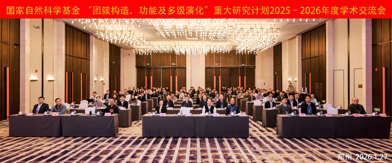 2026年1月26日至28日,国家自然科学基金委 “团簇构造、功能及多级演化” 重大研究计划2025-2026年度学术交流会在郑州顺利举行。本次会议由国家自然科学基金委主办、郑州大学承办。郑州大学党委书记李成伟会见与会领导嘉宾和专家学者。指导专家组组长郑兰荪院士、郑州大学校长李蓬院士出席开幕式并致辞。项目指导专家组、特邀专家、基金委管理工作组成员及项目负责人等120余人参加会议。会议开幕式由基金委化学科学三处处长康强主持。