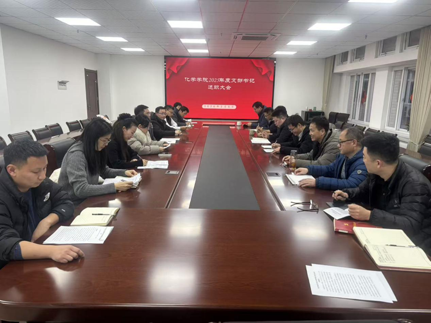 为深入学习贯彻习近平新时代中国特色社会主义思想,落实新时代党的建设总要求,压实基层党支部书记管党治党政治责任,2026年2月5日,化学学院在317会议室召开2025年度支部书记述职大会。学院领导班子成员、各教工党支部书记参会,会议由学院党委书记郝新奇主持。