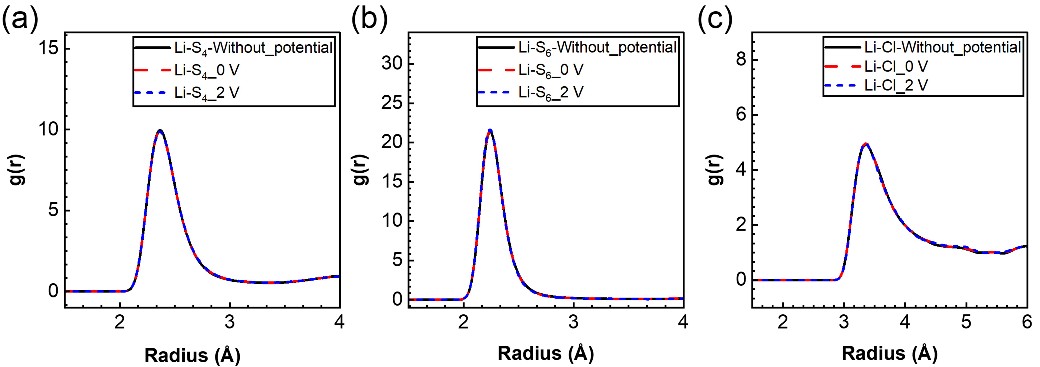 图2. 锂离子在不同电势下的径向分布函数