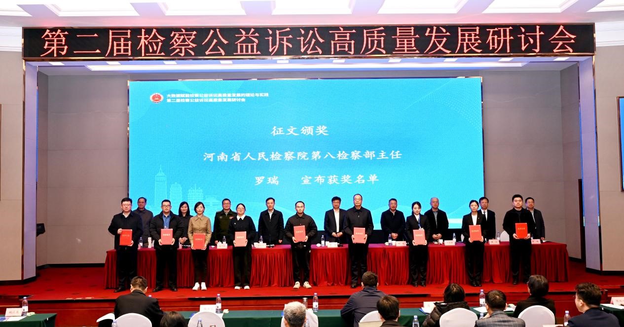 2025年11月21日,在最高检公益诉讼检察厅、最高检检察理论研究所指导下,河南省检察院、郑州大学法学院、郑州大学检察公益诉讼研究院共同举办第二届检察公益诉讼高质量发展研讨会。来自全国19所高校科研机构的知名专家学者以及来自20个省、自治区、直辖市的实务专家共计150余人参加会议。会前组织开展了主题征文活动,共收到参评论文331篇,经严格层层评审,评选出优秀论文共110篇。会议对获奖代表进行了颁奖。