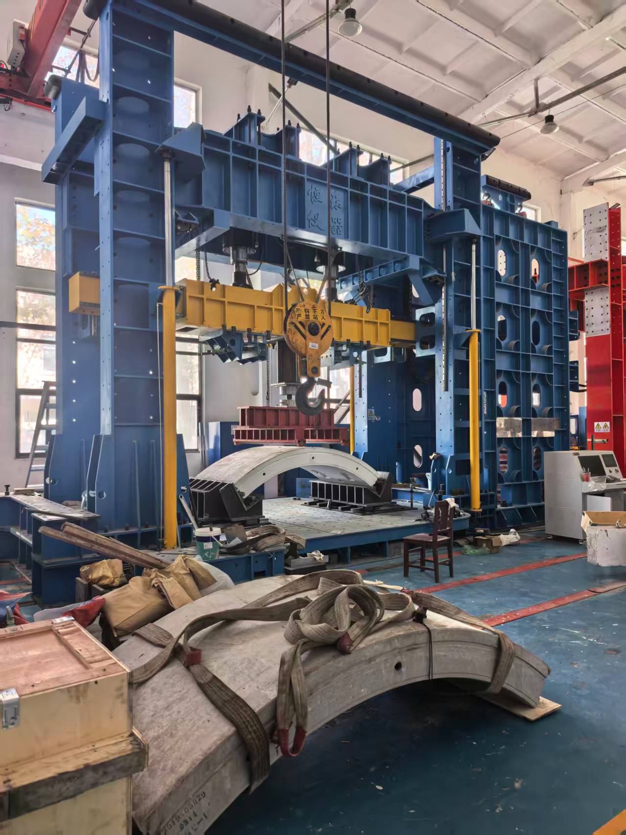 设备情况说明:该设备为后期组装设备,由2000kN液压伺服阵列加载系统、2000kN疲劳加载龙门架、动态单通道控制系统、试验控制柜、室外油箱、室外冷却塔、分油器、电柜和高压油管等组成。学院老师自配管片加载安装的自动化装置,目前主要用于做管片结构和混凝土板的静力加载。