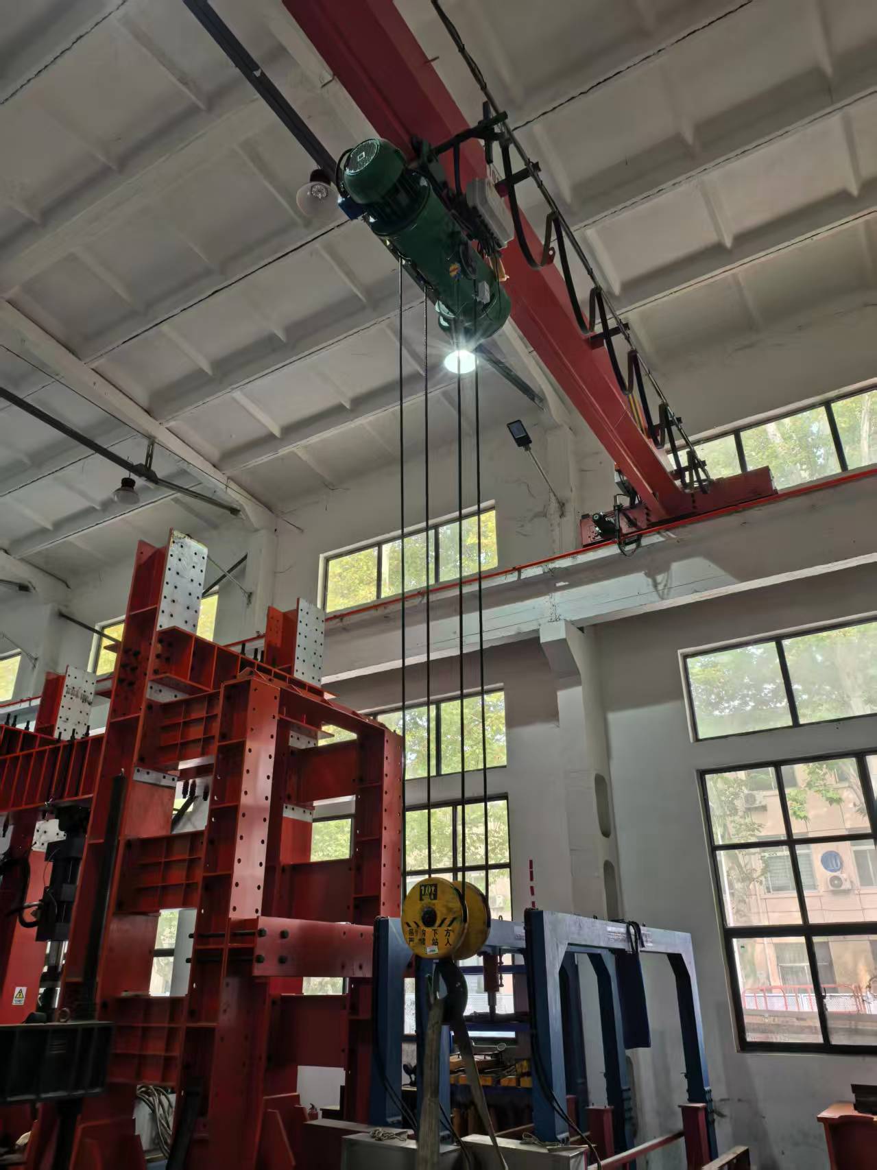 设备情况说明:该设备为整机购入设备,主要适用于梁构件及钢柱构件的静力加载试验。根据实际使用经验判断,该设备不适用于混凝土柱等脆性破坏形式的结构构件加载,破坏时产生的冲击力极易导致升降平台不平衡而卡断在升降柱上。