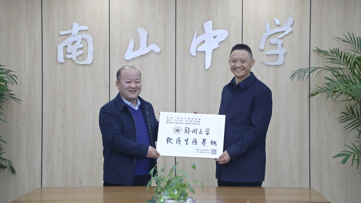魏涛老师代表学校授予南山中学“优秀生源基地”牌匾
