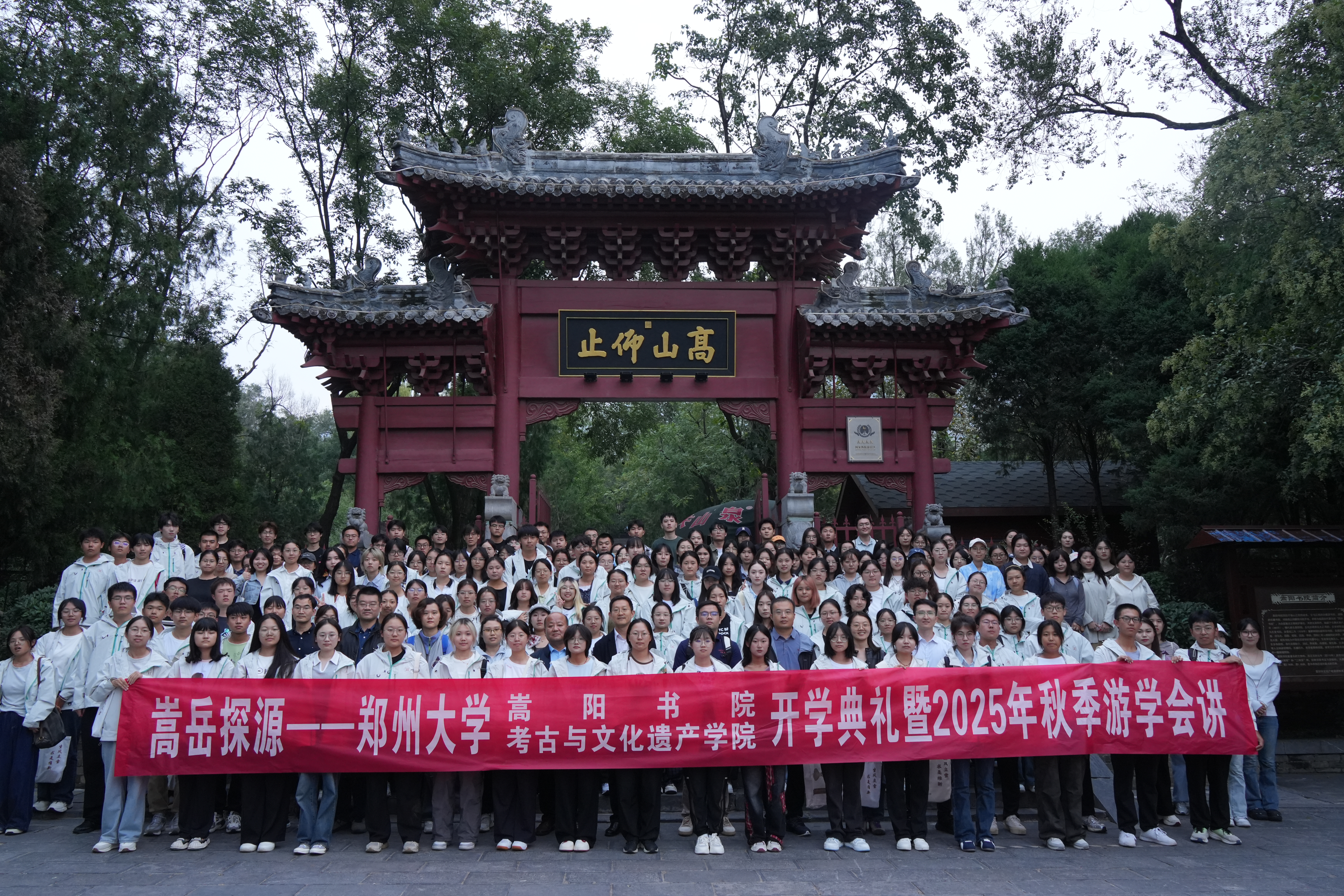 9月29日,郑州大学考古与文化遗产学院2025级新生开学典礼暨秋季游学会讲在登封市嵩阳书院举行。郑州大学党委副书记、工会主席韩国河,郑州市文物局党组书记、局长顾万发,登封市文物局党组书记、局长李新召,中国书院学会副会长、嵩山文化研究会副会长宫嵩涛出席活动。考古与文化遗产学院班子成员、教师代表、班主任、辅导员及2025级本科和研究生新生共200余人参加。考古与文化遗产学院党委书记赵维娟主持开学典礼。