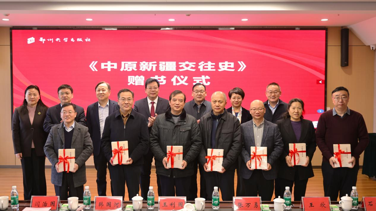 2025年12月31日,《中原新疆交往史》新书发布暨“中原新疆交往史与中华民族共同体意识形成”座谈会在郑州大学出版社举行。郑州大学党委副书记王利国,河南省委宣传部出版处处长、一级调研员张万勇,河南省教育厅高教处处长闫治国,郑州大学考古学科首席教授、本书主编韩国河等出席会议。考古与文化遗产学院党委书记马致远、院长赵维娟,来自陕西师范大学、河南科技大学、中国社会科学院考古研究所、洛阳市考古研究院、武汉大学等历史与考古领域的专家学者,学校相关单位负责同志参加活动。会议由校党委常委、宣传部部长,出版社总编辑孙保营主持。