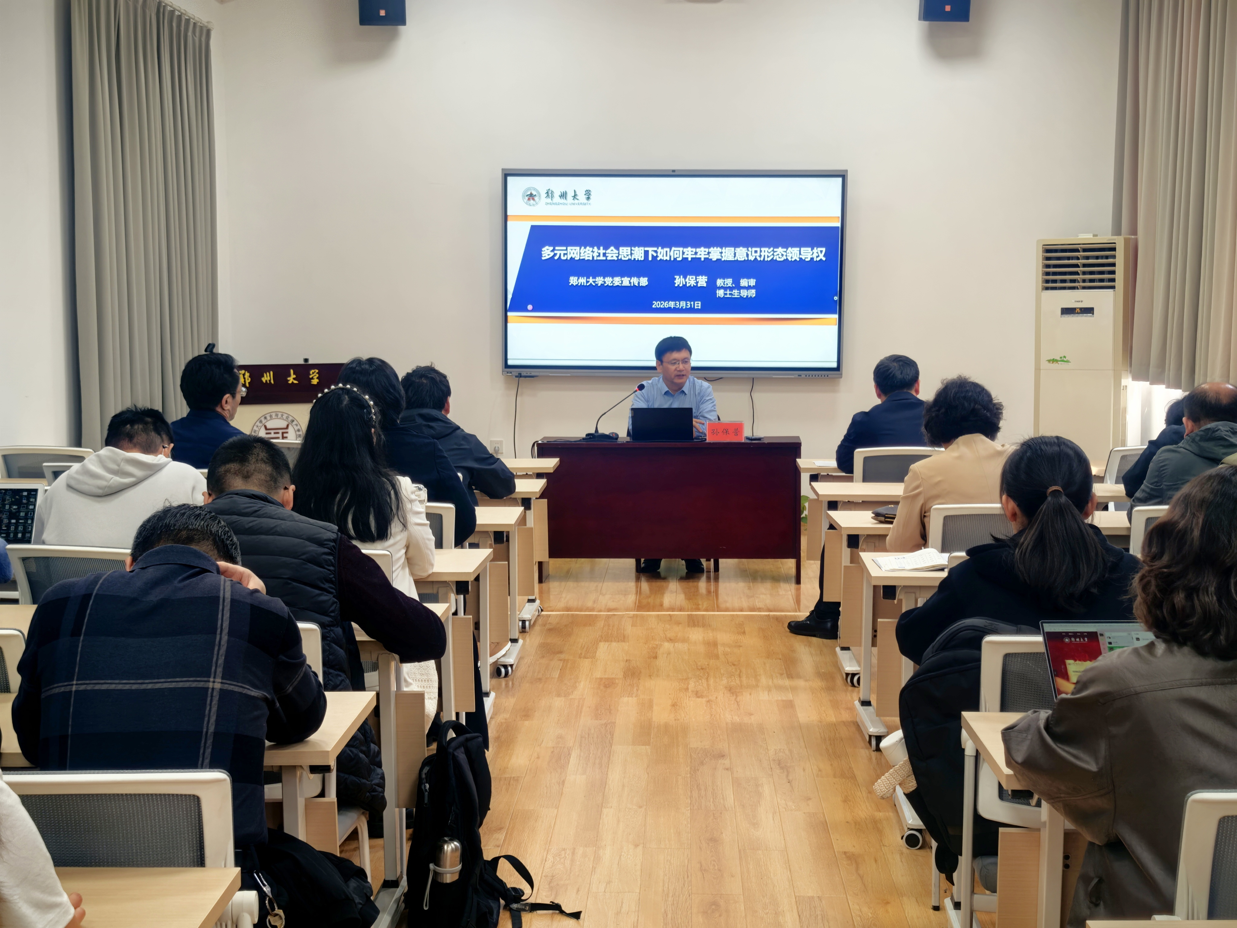 3月31日,考古与文化遗产学院在三楼教工之家召开树立和践行正确政绩观学习教育专题报告会暨党委理论学习中心组(扩大)专题学习会,校党委常委、党委宣传部部长孙保营教授作专题报告。学院全体教职工、各学生支部委员参会。院党委书记马致远主持报告会。