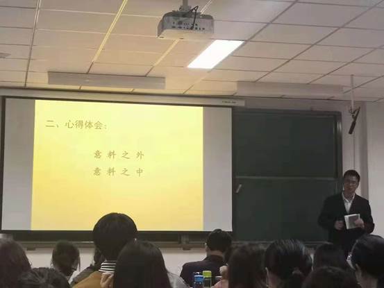 本次活动主要分为两部分,第一部分为港大访学见闻汇报,由10月上旬访学学生汇报见闻及体会,其中杨圣彦介绍了香港大学的校园环境,教育体系及牙医培养计划、口腔医疗机构、本科生培养方案、其他见闻。冯继玲和李艳艳介绍了港大的教学模式,包括pbl教学、牙科模拟操作室实验课程及小组讨论、临床诊疗过程等,并结合我院教学现状,提出了自己的看法。接着来老师补充了他此次访学的感受,希望同学坚定理想信念,全面综合发展。