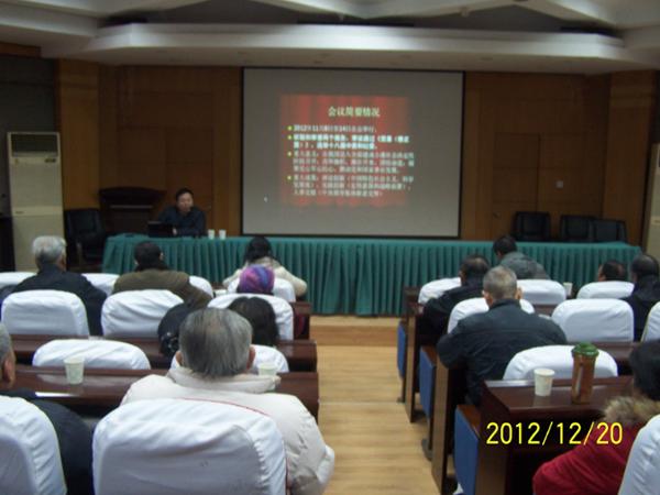 12月20日,处党委在南校区图书馆报告厅举行了十八大报告学习宣讲会。马克思主义学院院长、博士生导师于向东教授担任主讲, 42个离退休党支部的支部书记、支委委员和离退休处全体职工近150人参加了聆听和学习。