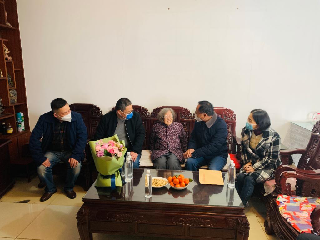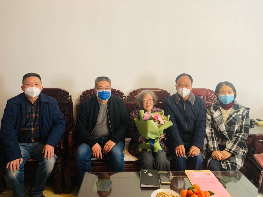2023年2月24日上午,离退处党委书记寇晓明、处长张保民等一行来到东校区易幼儒老师家中,代表学校党委和组织部看望慰问易幼儒老师,并向易幼儒老师呈上学校组织部的感谢信和慰问品。
