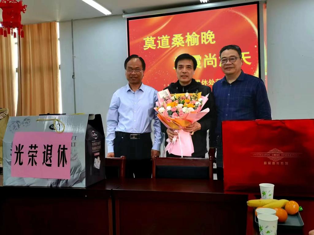 首先张保民处长对申延彪老师几十年来为学校和离退休老同志所做的贡献表示感谢,希望全体职工要学习老师爱岗敬业坚持原则认真负责关心集体乐于助人的精神和工作态度。他希望老师荣退后还继续关心、支持离退休处的工作,为离退休工作建言献策,衷心祝愿荣退后的生活充实安康。
