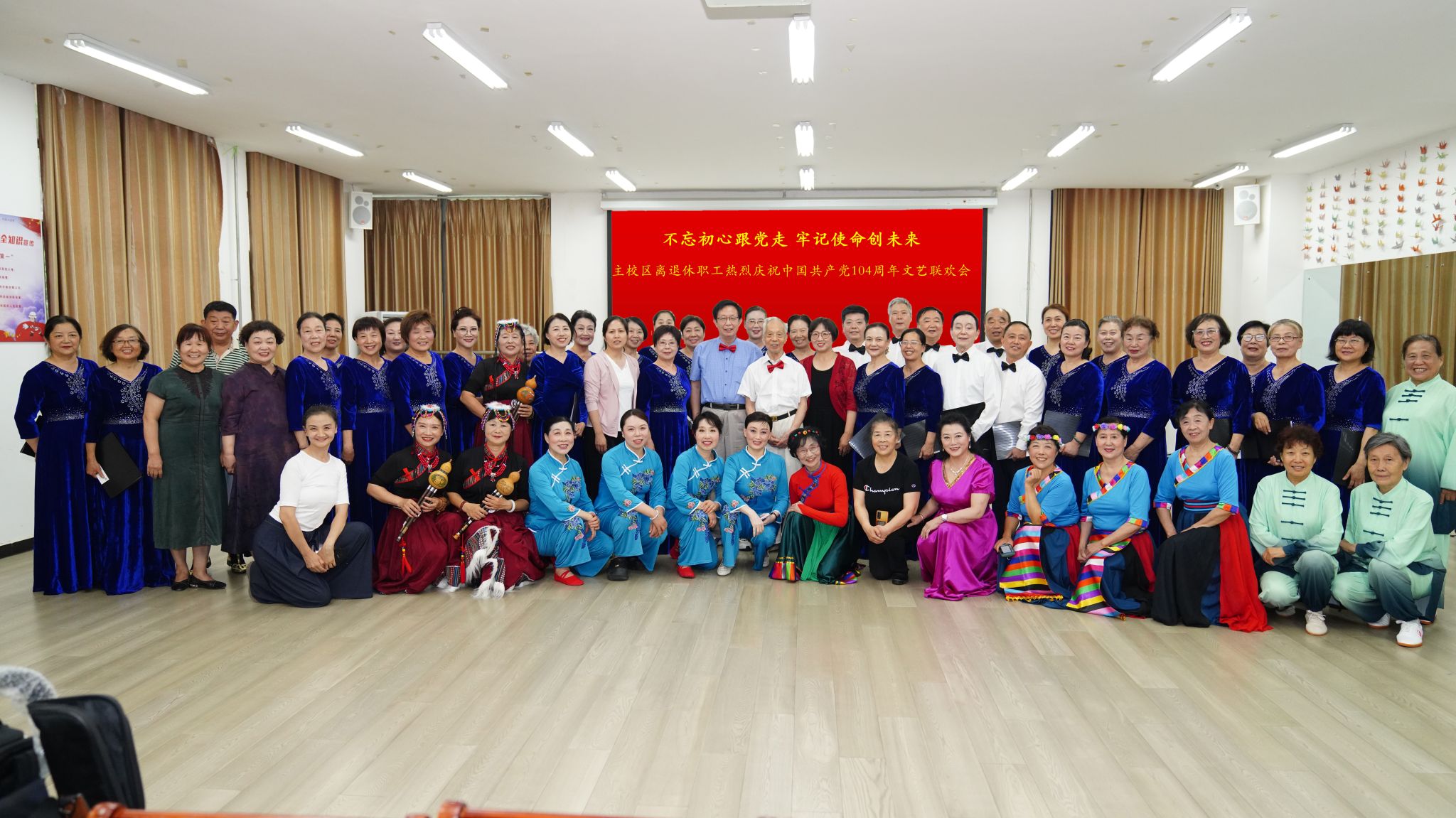 6月27日,主校区离退休职工活动中心欢声笑语。为热烈庆祝中国共产党成立104周年,主校区离退休职工举办了“不忘初心跟党走 牢记使命创未来”为主题的文艺汇演。140余名离退休职工用自编自演的16个精彩节目向党献上赤诚礼赞。