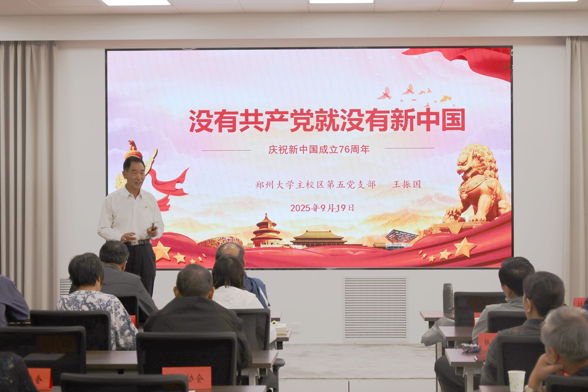 座谈会邀请2025年河南省离退休干部先进集体主校区退休第五党支部王振国书记为大家上了题为《没有共产党就没有新中国》的精彩党课。王振国用详实的图片、视频和真实的数据,结合中国历史,深入阐述了为什么没有共产党就没有新中国。