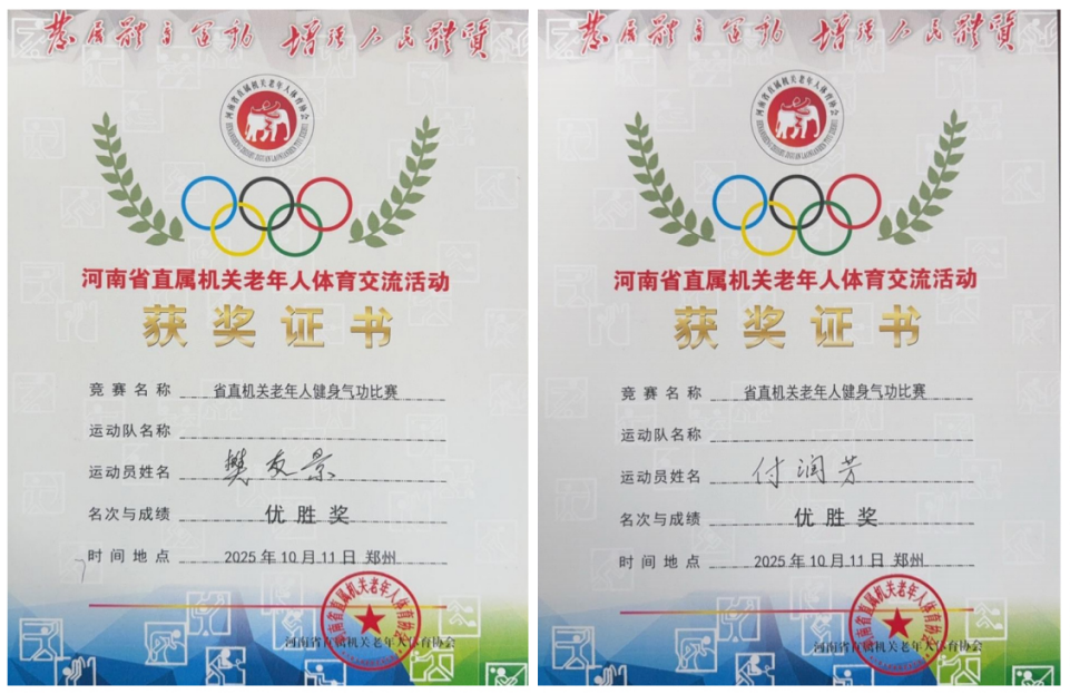2025年河南省直属机关老年人健身气功比赛于近日在河南省老干部活动学习中心成功举办。主校区退休职工积极组队参赛,团结协作、发挥出色,在集体与个人项目中均取得优异成绩。
