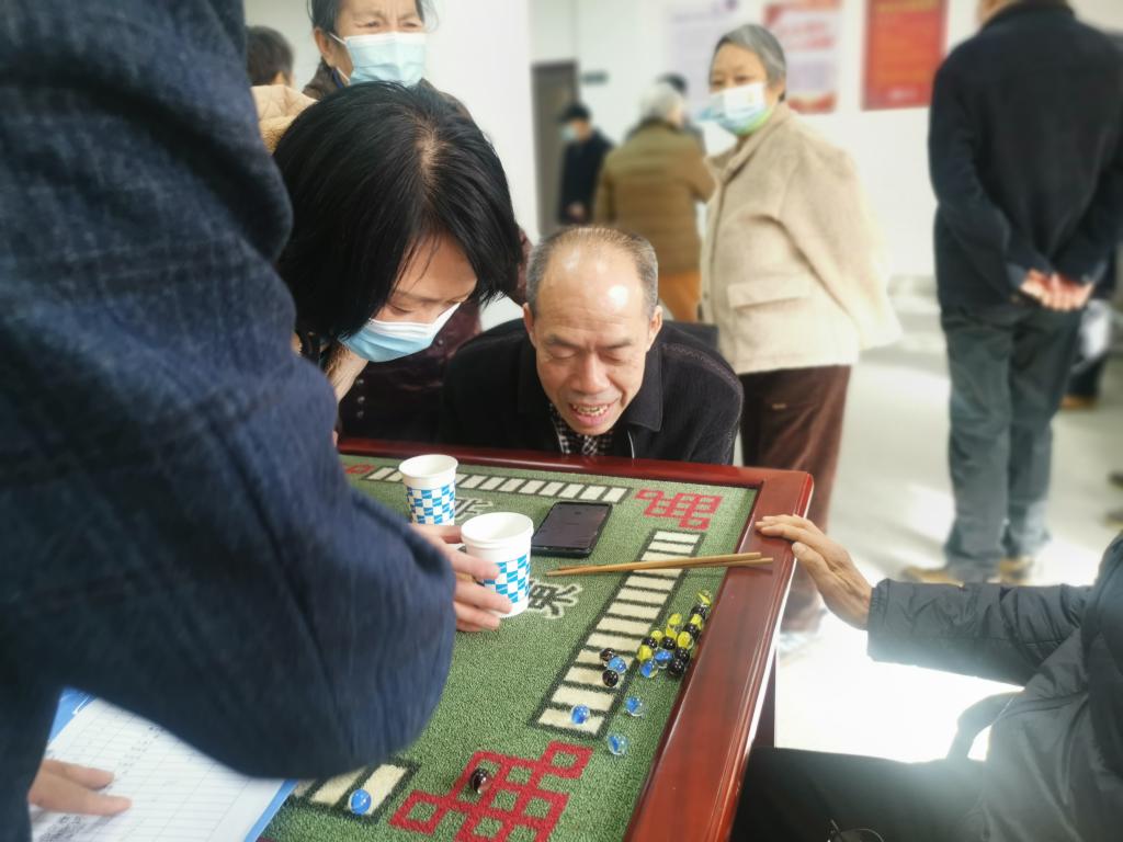 活动分上午、下午分项目进行,考虑到老同志们的年龄和场地限制,以及新冠疫情后恢复期等多种因素,总共设置了筷子夹玻璃球、飞镖投准、乒乓球投篮、足球射门、趣味保龄球等五个项目。