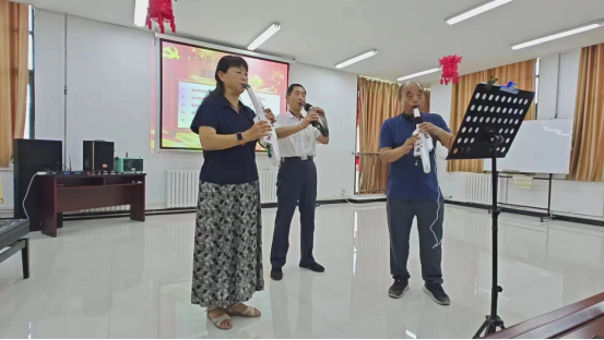 活动现场氛围热烈,退休党员们欢聚一堂,大家满怀诚挚情感,纷纷登台献艺,演奏了《十送红军》、《看见你们格外亲》、《我和我的祖国》、《最美浏阳河》、《没有共产党就没有新中国》等一首首耳熟能详的红色歌曲,展示了较高的演奏水平。悠扬的歌声表达了离退休党员们对党的感恩之情,抒发了老党员们对党的绝对忠诚和无限热爱,凝聚起团结奋进、积极向上的精神力量,更加坚定了听党话、感党恩、跟党走的决心。
