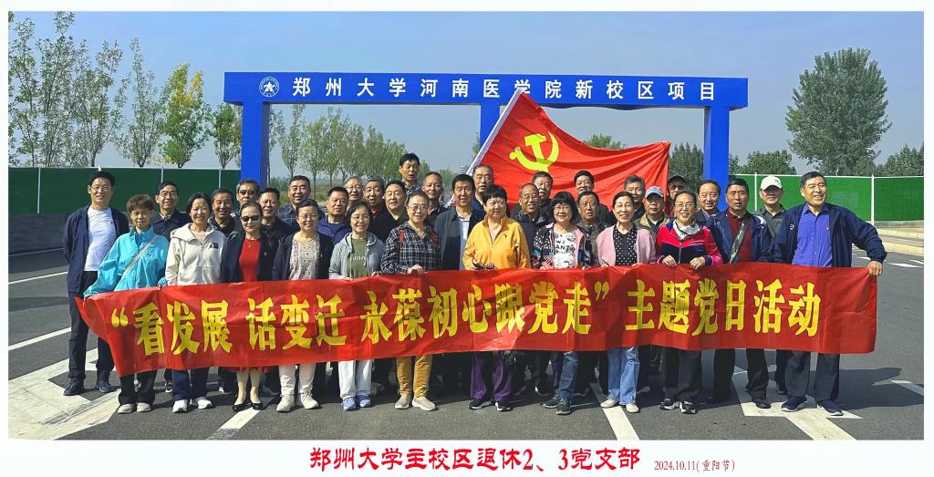 为庆祝新中国成立75周年和弘扬中华民族尊老敬老爱老助老传统美德,在10月11日重阳佳节当天,郑州大学离退休职工工作处主校区第二、三党支部组织党员开展“看发展、话变迁,永葆初心跟党走”主题党日活动。第二支部书记孙志礼、第三支部书记刘孝广带领近40名党员开展主题党日活动,我校原党委副书记李兴成同志以第二支部普通党员的身份参加活动。