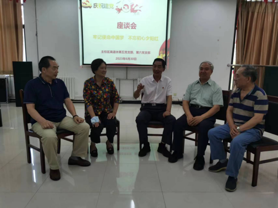为深入学习贯彻落实习近平新时代中国特色社会主义思想和党的二十大精神,大力弘扬伟大建党精神,庆祝中国共产党成立102周年,6月30日,主校区退休第五党支部、第六党支部组织开展了“牢记使命中国梦 不忘初心夕阳红”主题座谈会活动。