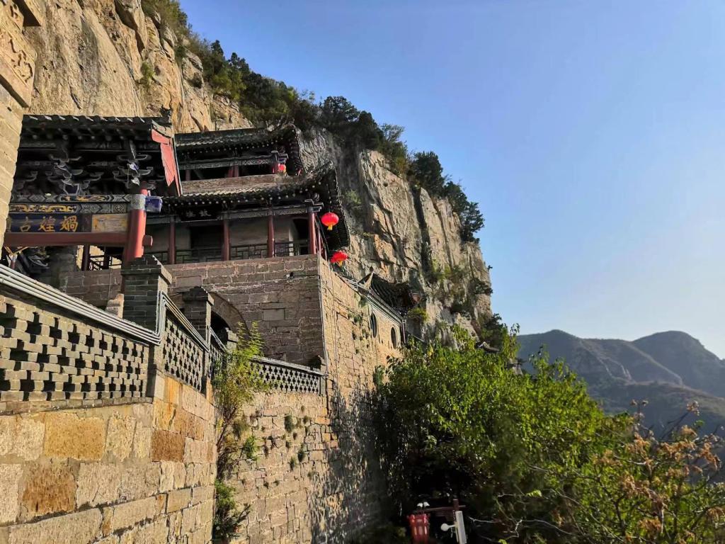 纵观娲皇宫,嵌于绝壁,悬于凌霄,阁前远眺,漳水如带,群山雍翠,太行胜景,尽收眼底,堪称“天造地设之境”。