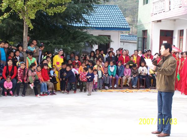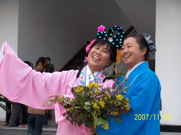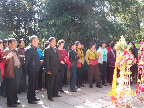 新县周河乡慰问演出现场 郑州大学老干部艺术团的老同志为许世友将军扫墓