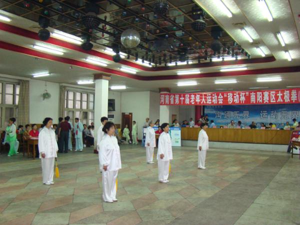 5月21日至25日由我校北校区吴娱、孟祥荣等10人组成的太极拳、剑代表队参加了在南阳市举办的河南省第十届老年人运动会太极拳、剑项目比赛,这是我校老同志第一次外出参加省级太极拳、剑大赛。参赛队员纷纷表示参加这次比赛真是受益匪浅,使我们学到了很多在单位内学不到的东西,开阔了眼界,找到了不足。此次比赛全省各地、市和企事业单位共有32个代表队、173名运动员参加。