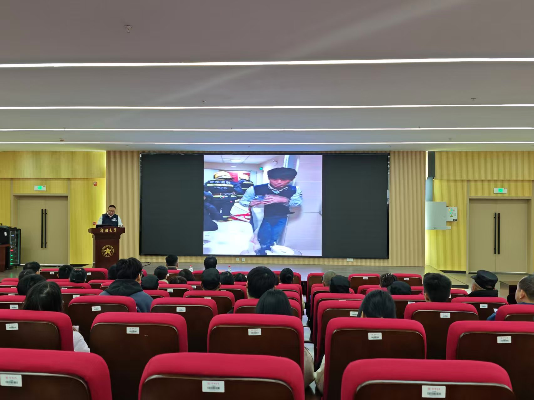 叶新江在开场中强调了消防安全的重要性,指出每一位师生都应牢固树立安全理念,切实增强防范意识。活动邀请了河南省消防协会相关人员为师生们开展理论培训,围绕实验室、宿舍消防安全、火场逃生常识及消防器材使用等内容进行科普,旨在从认知层面为全体师生筑牢安全基础。理论培训后,进行了应急疏散演练,参训人员按规范有序撤离至安全区域,通过实景模拟检验并强化了理论指导下的应急疏散能力。随后的灭火演练环节,参演人员在教员指导下实操灭火器,进一步在实操中提升初起火灾扑救技能,实现“懂理论、会逃生、能扑救”的全链条能力培养。