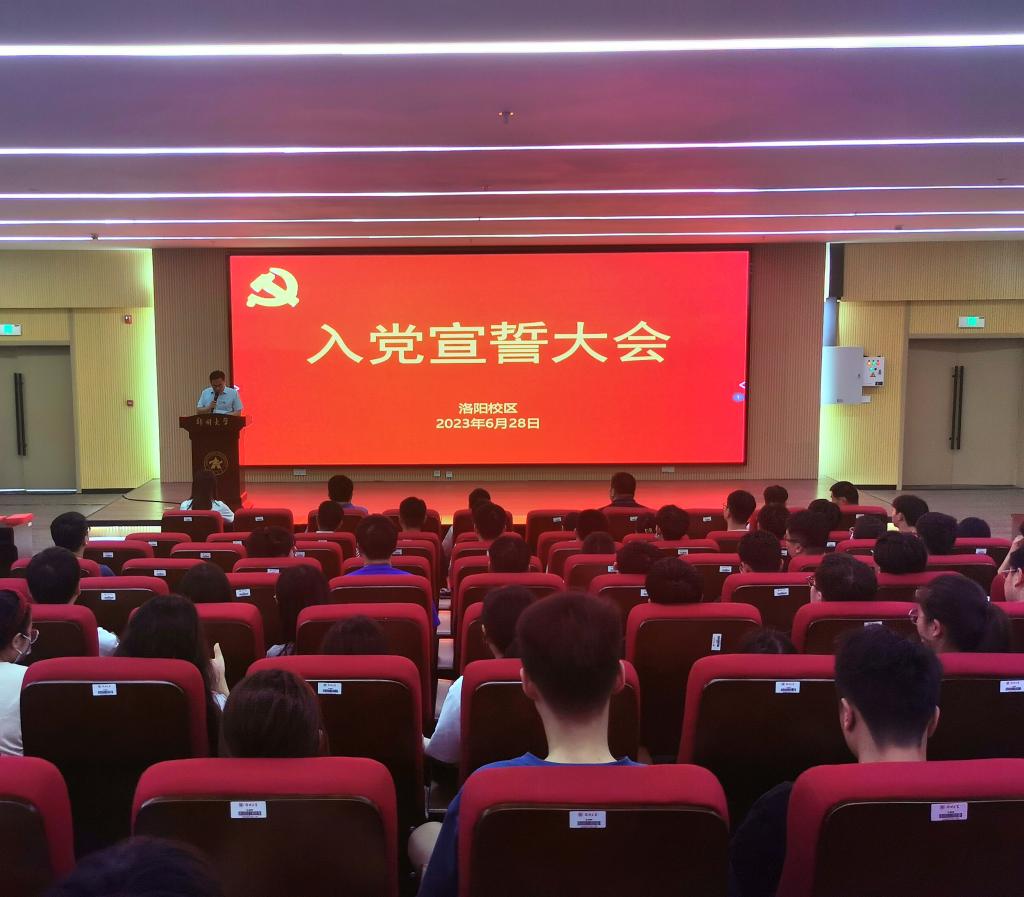 6月28日,为进一步弘扬伟大建党精神,赓续中国共产党人的精神血脉,激励校区师生党员踔厉奋发、担当实干,洛阳校区在第一学术报告厅举行庆祝建党102周年,新党员入党宣誓仪式暨创先争优表彰大会。校党委常委、副校长,洛阳校区党委书记屈凌波出席会议,校区全体师生党员、入党积极分子参会。