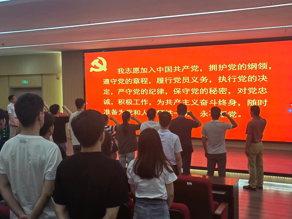 入党宣誓仪式在雄壮的《国际歌》中拉开序幕。在校区党委委员王建敏同志的领誓下,新党员面对鲜红的党旗高举右拳庄严宣誓,铿锵有力的誓词展现了党员同志们立志坚守共产党人精神追求、践行共产党人初心使命的信心和决心。