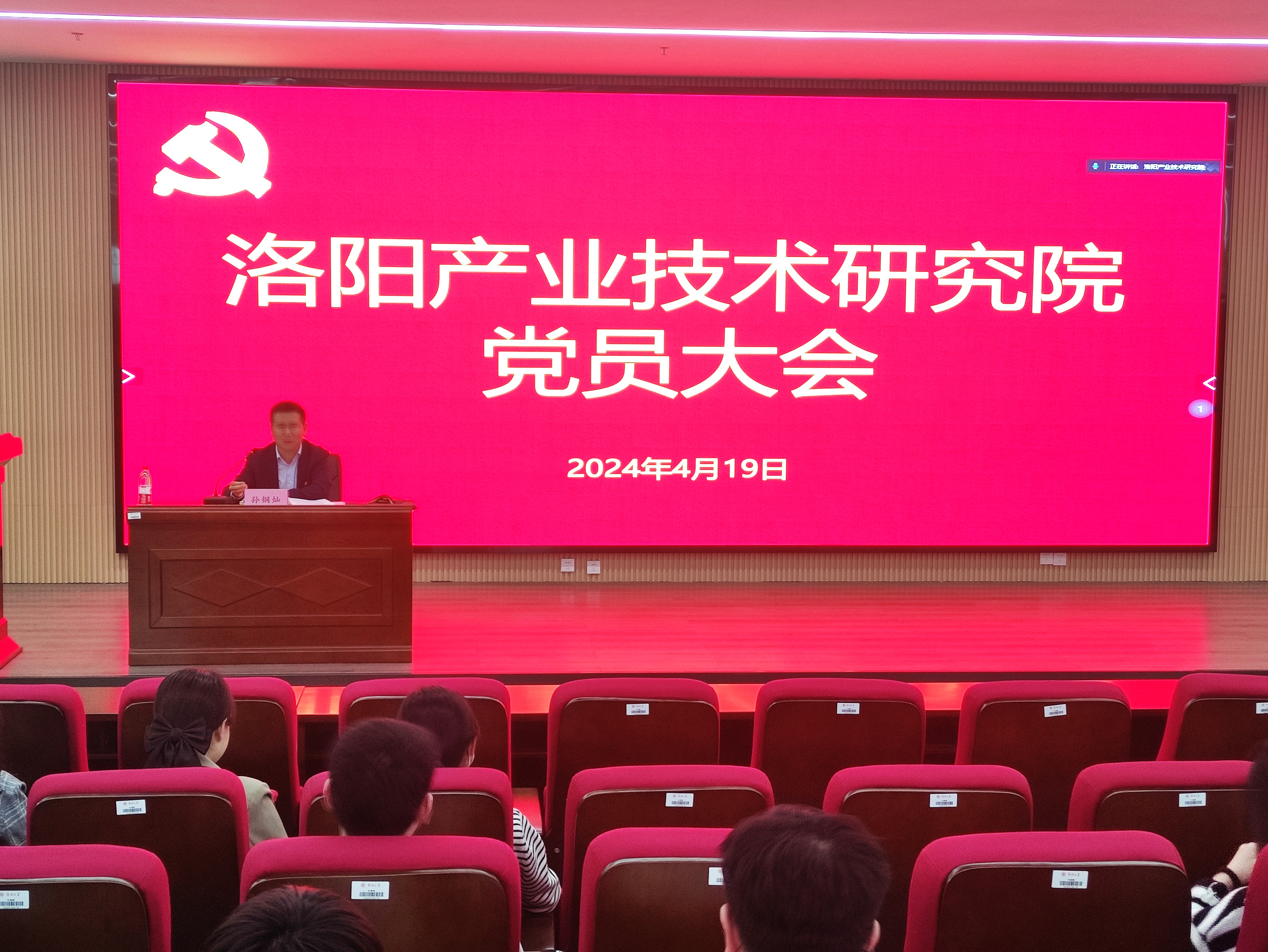 4月19日,洛阳产业技术研究院在实验楼第一学术报告厅召开党员大会,集中开展理论学习,选举研究院党委参加中国共产党郑州大学第四次代表大会代表。本次会议采用线上线下相结合的方式举行,研究院全体党员参加会议。