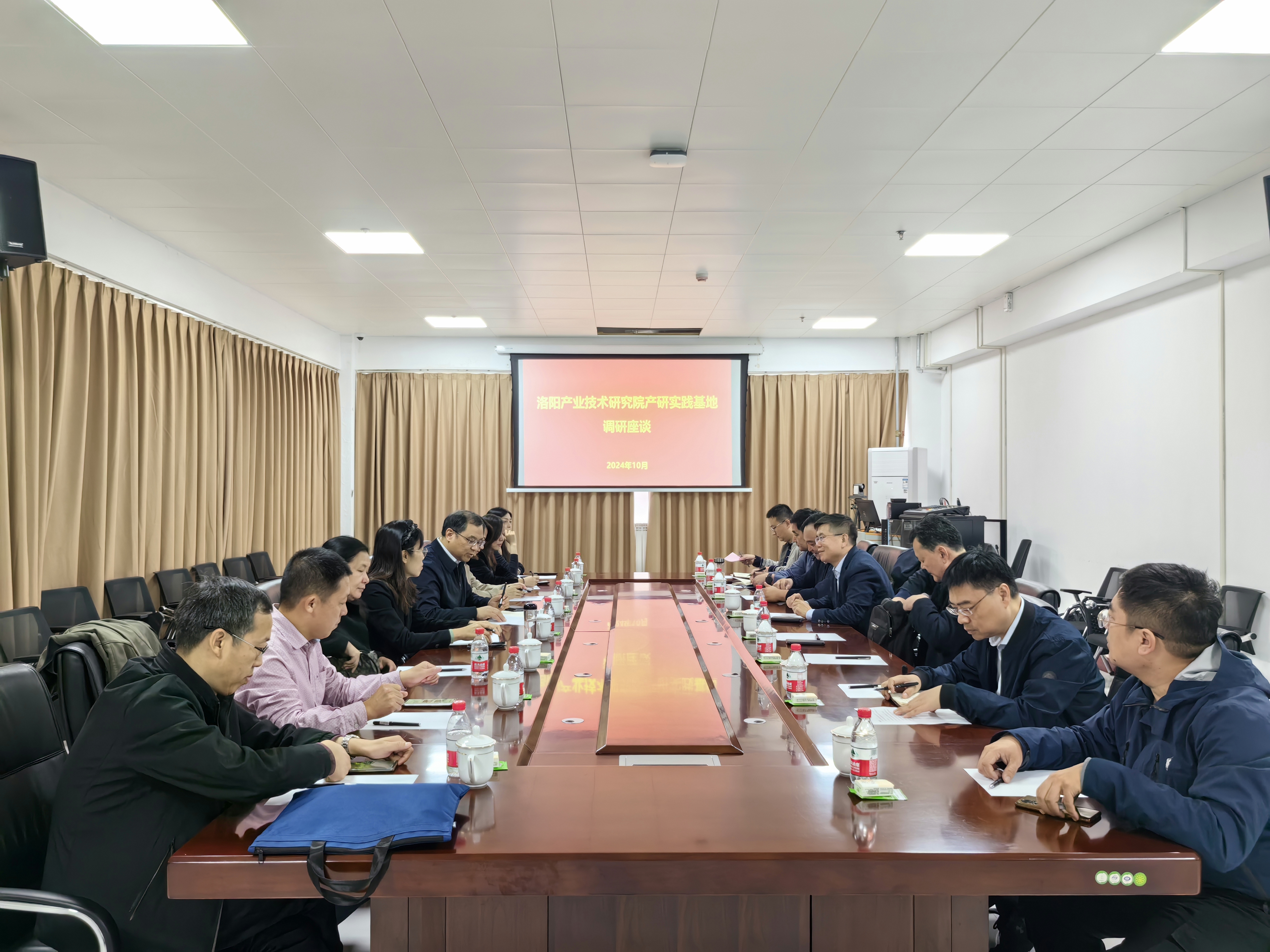 考察组一行依次参观了研究院智慧教室、学生公寓、图书馆、活动室、实验室、餐饮中心等重点区域,并前往合作单位实地考察了产学研深度融合情况。研究院负责同志就“研究院产学研深度融合工作阶段性成果”作专题汇报。考察组详细了解了研究院产学研合作现状以及学生科研、住宿和餐饮保障情况。在随后的座谈会上,考察组与研究院负责同志就产学研深度融合工作中存在的问题和挑战、未来的发展方向进行了深入交流。