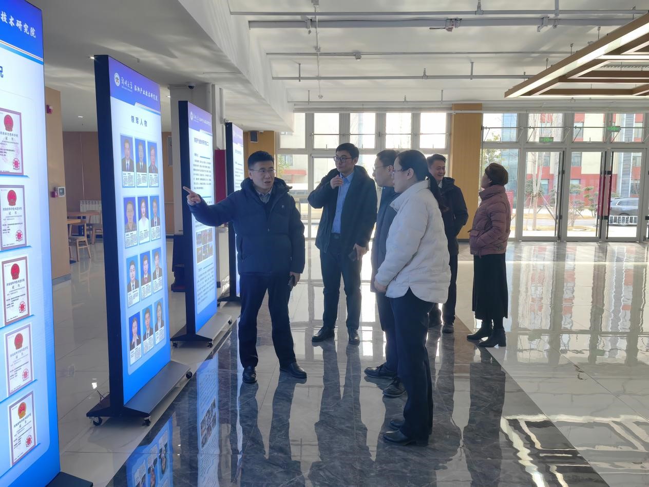 郭燕一行先后赴研究院智慧教室、实验室等重点区域进行考察,深入了解了研究院科研设备、研究方向及成果、学生培养、产学研实践等各方面的情况,并就研究院发展规划给予意见与建议。希望研究院立足新型研发机构的定位,深入结合洛阳地区产业特色,充分发挥郑大学科人才优势,创造开展科技成果转移转化,形成地区高校协同发展的良好局面。