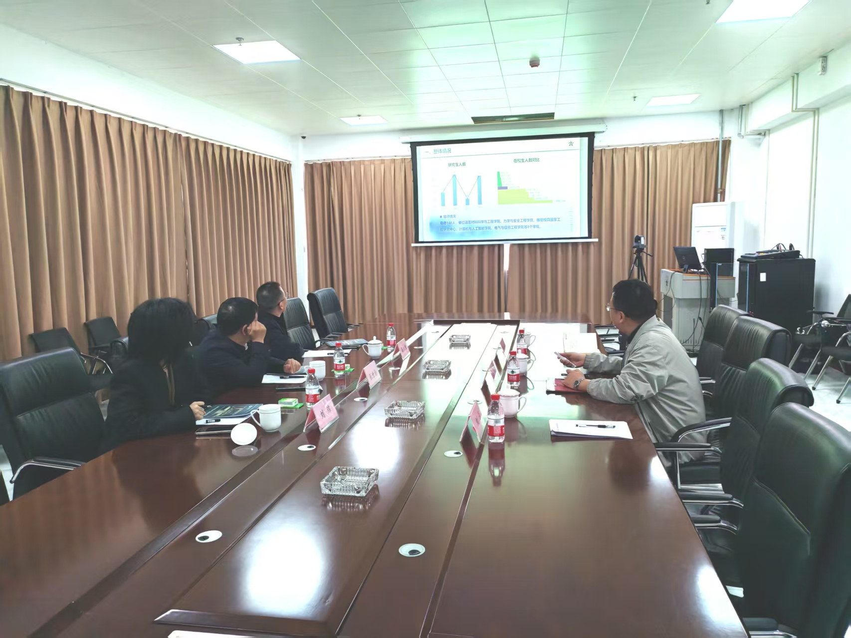 会上,王飞代表研究院对调研组一行到来表示热烈欢迎和对研工部一直以来的支持表示感谢,随后他从研究院整体概况、学生管理队伍建设、日常教育管理、未来发展计划等方面介绍了研究院研究生工作开展情况。张世勋对研究院学生工作提出了肯定,并对相关教师在学生工作中的辛苦付出表示感谢,希望研究院进一步加强与导师等对接,结合自身特色做好创新,确保研究生培养过程各环节安全、有序开展。