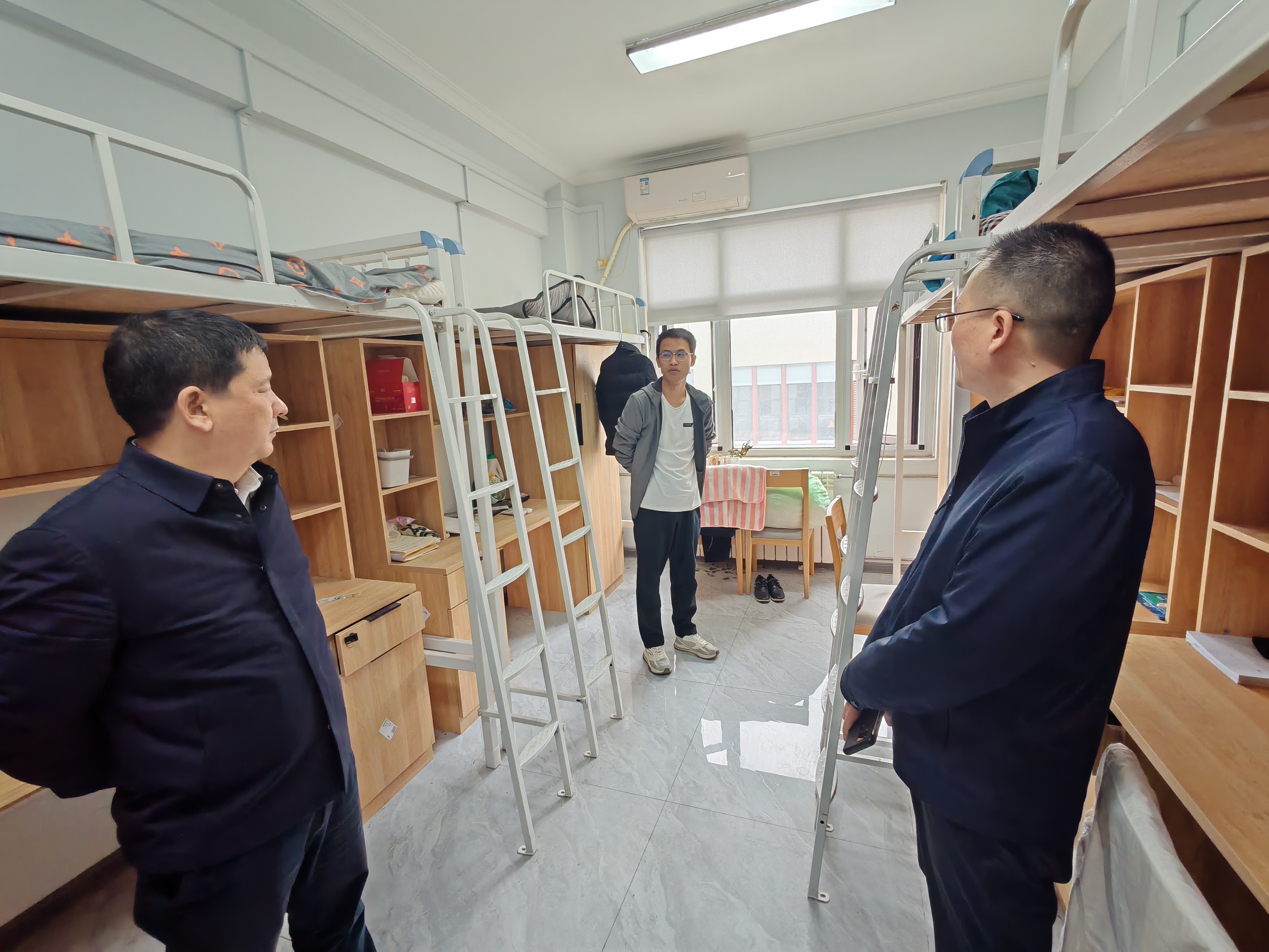 会后,张世勋一行到宿舍看望在校学生,鼓励大家以积极的心态应对科研和就业的压力,积极融入校园生活,努力学习专业知识,不断提升自我素质。