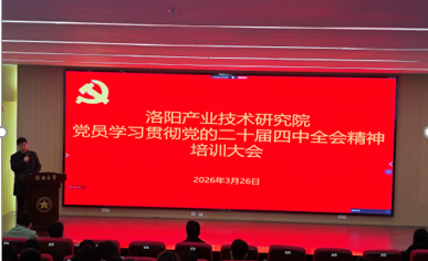 为深入学习领会“十五五”时期经济社会发展总体部署,切实提升全体党员的政治素养,3月26日上午,郑州大学洛阳产业技术研究院在实验楼2018报告厅开展专题集中培训,学习贯彻党的二十届四中全会精神。