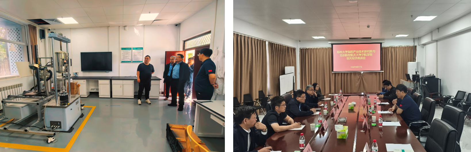 4月17日,北京航空航天大学宇航学院尹继豪教授一行来院调研交流。双方围绕交叉学科建设、产研融合等内容展开探讨。研究院党委书记叶新江、党委副书记张翰风、副院长徐文涛及产融中心相关同志参与接待并出席座谈会。