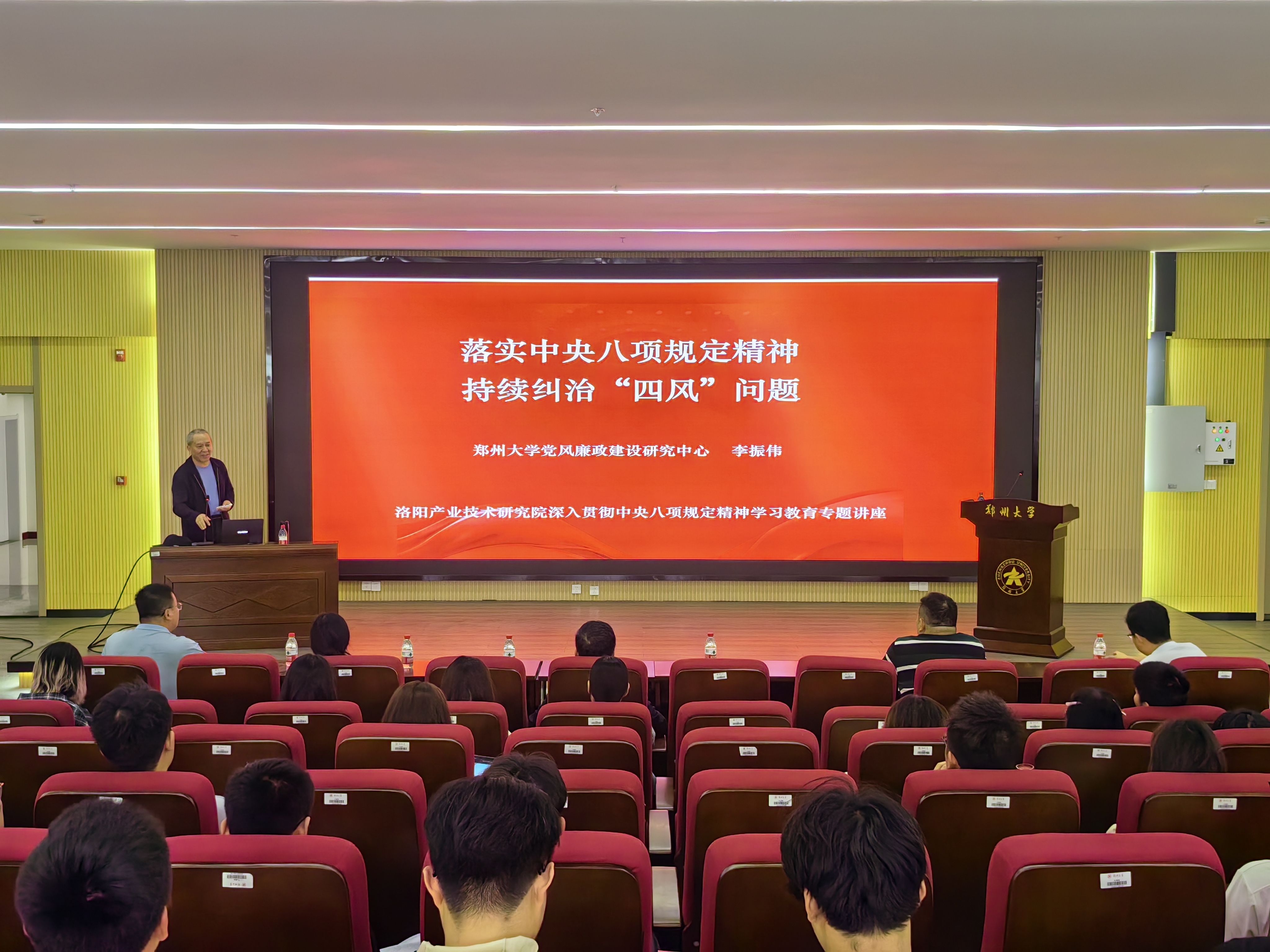 为深入贯彻落实党的二十大精神,推进全面从严治党向纵深发展,4月25日-26日,研究院党委结合学习中央八项规定精神部署,以“习近平总书记关于加强党的作风建设的重要论述”为主题,开展党委理论学习中心组(扩大)学习会议。此次会议特邀学校正处级巡查专员李振伟老师作专题讲座,由集中报告和座谈讨论两个环节组成,研究院党政领导班子、全体党员及师生代表参会。