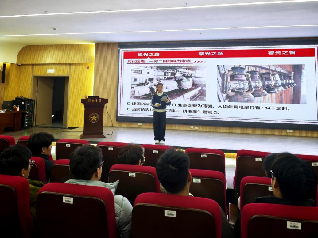 近日,郑州大学电气与信息工程学院EI睿行工坊博士生宣讲团走进研究院,开展“光的征途——中国电力的数字智能化”主题宣讲活动。活动以“从‘追光’到‘擎光’,中国电力的数字新时代”为主线,通过“追光——擎光——睿光”三个篇章,为青年学子呈现了一场富有历史深度、现实关怀和未来视野的学术交流。