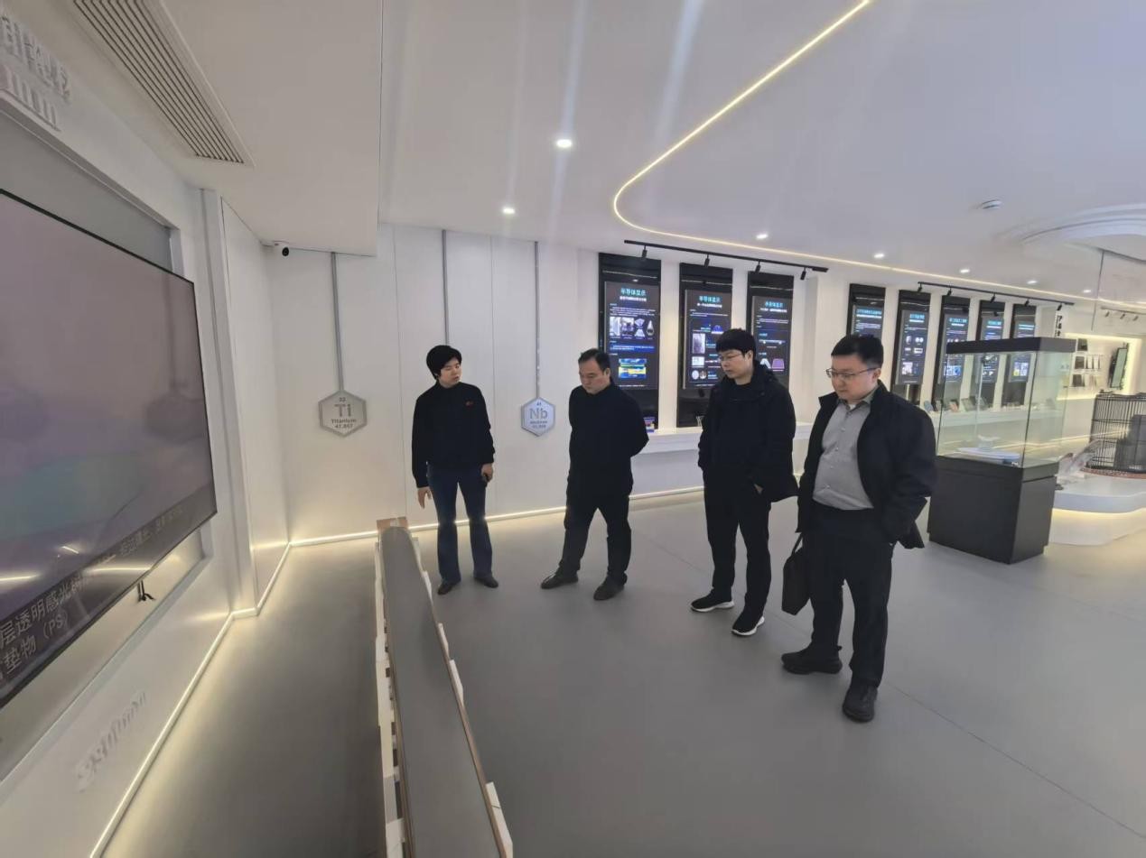 座谈会结束后,研究院一行旋即赶往丰联科光电股份有限公司进行调研,丰联科光电股份有限公司是洛阳市专业从事电子信息靶材、难熔金属材料及深加工制品的生产、研发和销售的高新技术企业,省级“专精特新”企业。在公司负责人张雪凤总经理的陪同下,叶新江书记一行参观了企业展厅和生产车间,详细了解了其技术研发、产品应用和市场前景。在随后的交流中,双方就校企联合中心建设、企业人才培训、共建研发平台等方面进行了深入交流,并初步达成了深度合作意向。