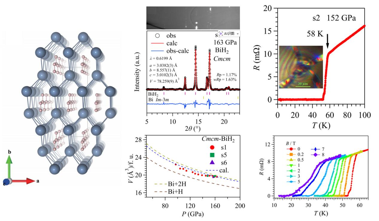 图. 分子型二氢化铋超导体 BiH2的晶体结构和超导转变