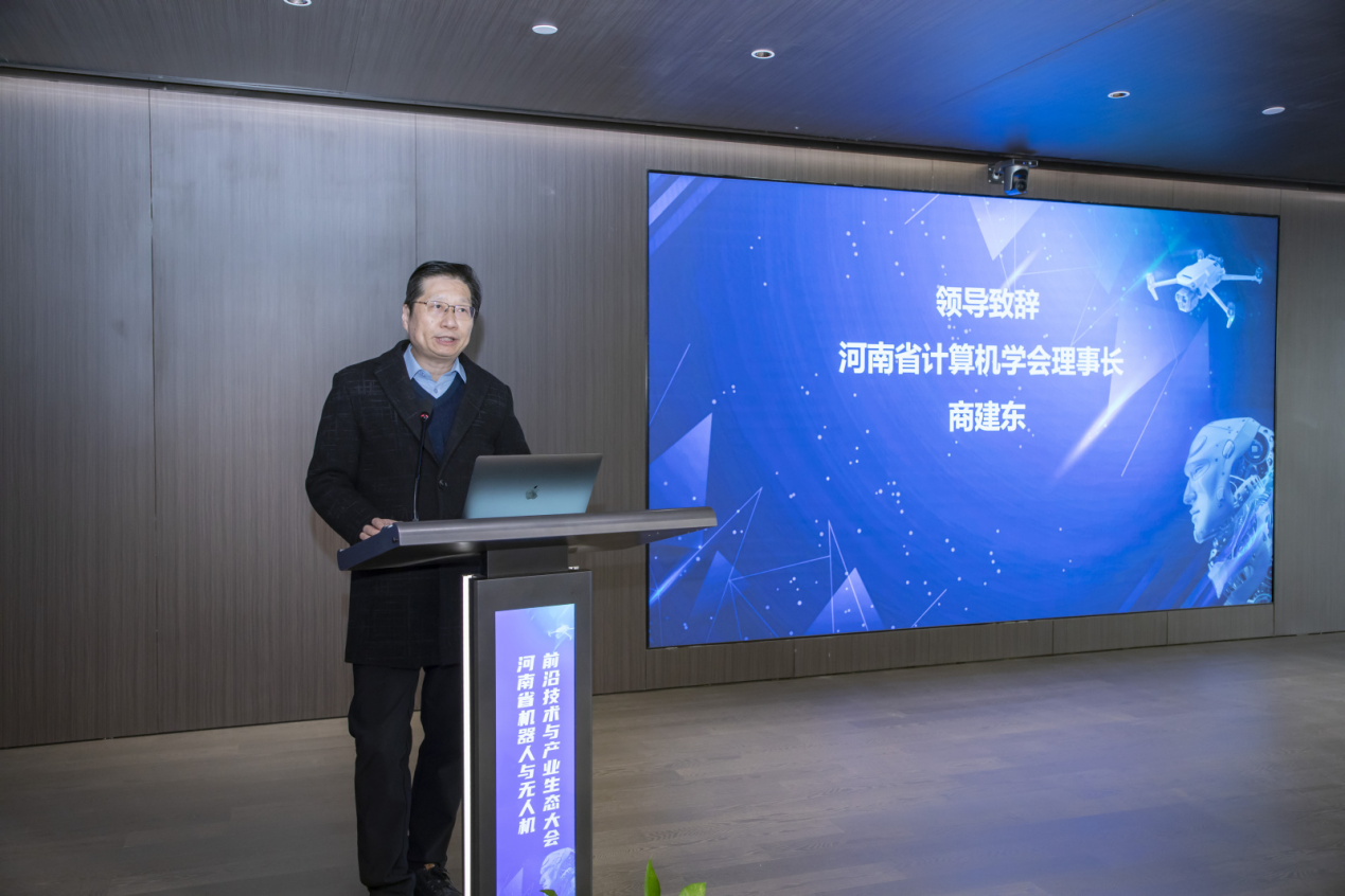 开幕式上,河南省计算机学会理事长、郑州大学计算机与人工智能学院党委书记、国家超级计算郑州中心执行主任商建东受邀出席大会并代表河南省计算机学会致辞。他指出,河南省计算机学会自成立以来,始终秉持推动计算机科技进步、服务社会经济发展的初心使命,在推动我省信息化建设和数字经济发展方面发挥了积极作用。他简要介绍了举办此次大会的核心主旨以及河南省计算机学会“机器人与无人机专业委员会”未来发力方向。他希望大家在与会期间能够汇聚智慧,凝聚合力,为将河南省打造成为具有重要影响力的机器人与无人机技术创新高地和产业集聚区而共同奋斗!