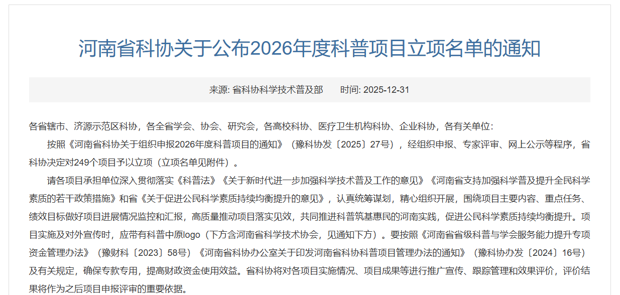 近日,河南省科学技术协会公布2026年度科普项目立项名单,由河南省计算机学会申报、国家超级计算郑州中心党支部书记、主任商建东教授领衔的“河南省首席科普专家商建东工作室”成功入选,成为20个首席科普专家工作室之一。这是郑州中心党支部坚持以高质量党建引领高质量发展,持续深化“科普育人”工作的又一重要标志性成果。商建东教授身兼郑州大学计算机与人工智能学院党委书记,国家超级计算郑州中心党支部书记、主任,长期致力于高性能计算、智慧城市等领域的研究与科学普及工作,2025年入选“河南省首席科普专家”。
