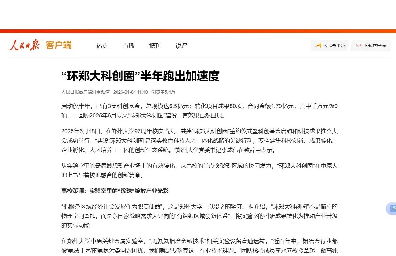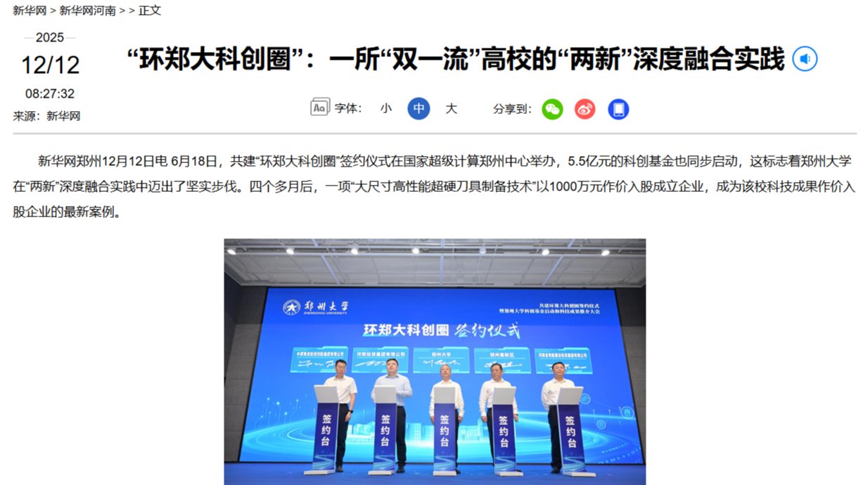 郑州大学国家大学科技园(以下简称“郑大科技园”)是郑州大学科技成果转化“承载地”、青年创新人才培养“集训地”和科技创业孵化“引育地”。2017年8月,郑大科技园被河南省科技厅和教育厅认定为河南省大学科技园;2021年6月,获批第十一批国家大学科技园。自成立以来,依托郑州大学学科优势,结合区域产业发展需求,积极推进“校企研发中心、成果评价中心、概念验证中心、中试验证中心、技术转移中心”五大中心建设,现布局有国家、省、市级平台47个;聚焦新材料、人工智能、生物医药、资源环境等产业领域,累计孵化学科性科创企业80余家,现有在孵企业56家,接近80%的企业拥有自主发明专利(专利有效拥有量达1049件),累计培育国家专精特新“小巨人”企业1家,瞪羚企业1家,潜在瞪羚企业6家,高新技术企业32家,国家科技型中小企业56家,园区科技型企业密度区域领先。