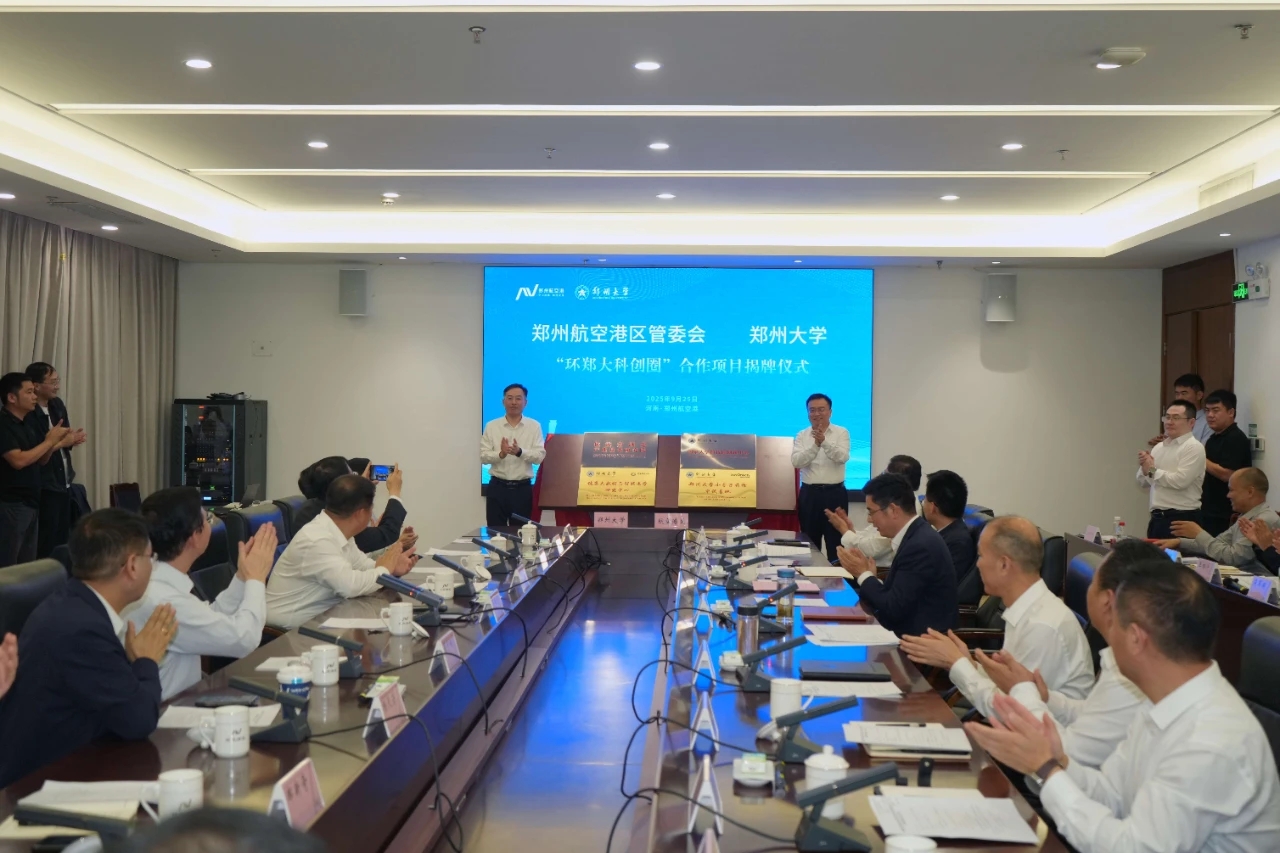 9月25日,郑州大学与郑州航空港经济综合实验区管委会签署共建“环郑大科创圈”合作协议,校党委书记李成伟与航空港区管委会主任田海涛共同为郑州大学国家大学科技园创新中心项目揭牌,为郑州大学成果转化平台矩阵建设再谋新篇。